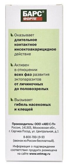 - Спр ей инсектоакарицидный БАРС ФОРТЕ