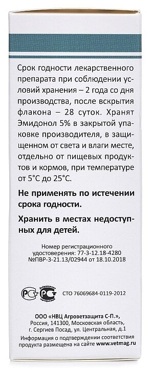 Эмидонол 5% инъекционный антиоксидант антигипоксант регуляторного действия 100мл ООО НВЦ Агроветзащита С.-П. (1473122)