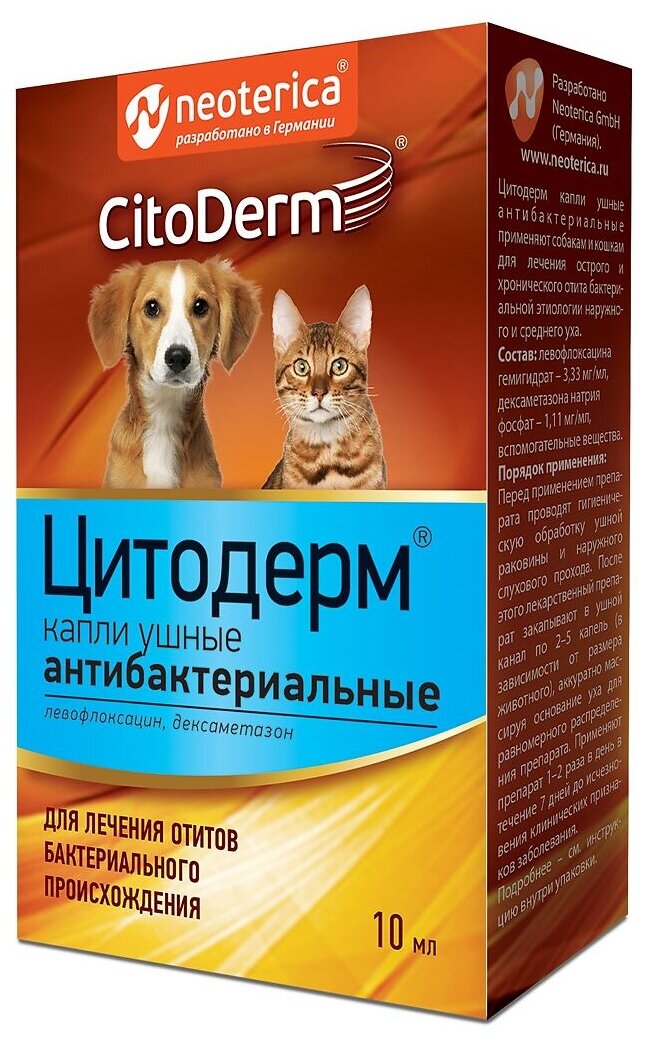 Капли ушные для животных антибактериальные CitoDerm 10мл АО "НПФ "Экопром" (1551540)