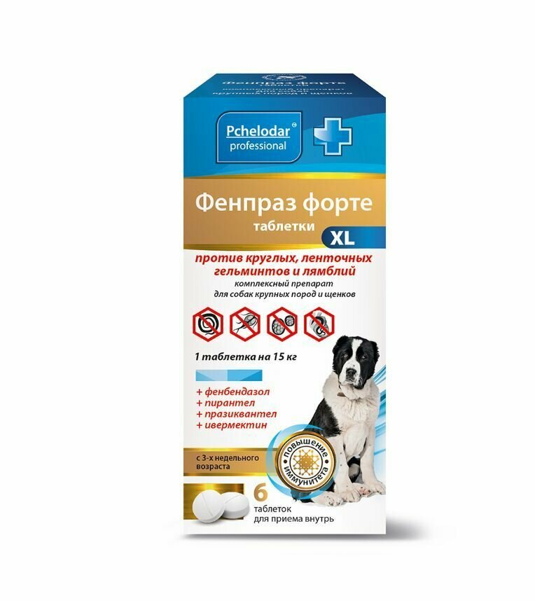 Фенпраз Форте – надежное средство от глистов для собак от ПчелодарХотите обеспечить своего питомца надежной защитой от глистов? Тогда Фенпраз Форте – идеальное решение для вас! Эти таблетки разработаны специально для собак и обеспечивают эффективное избавление от паразитов.Глисты – это серьезная проблема, с которой сталкиваются многие владельцы собак. Они могут нанести значительный вред здоровью вашего питомца, вызывая различные заболевания и ослабляя иммунную систему. Поэтому так важно своевременно проводить профилактику и лечение.Фенпраз Форте – это комбинированный препарат, который эффективно борется с различными видами глистов, такими как кишечные, печеночные и сердечные глисты. Его действие основано на уничтожении паразитов и выводе их из организма собаки. Таблетки имеют приятный вкус, что облегчает их прием для животного.Одним из ключевых преимуществ Фенпраз Форте является его безопасность. Препарат разработан с учетом особенностей организма собак и не оказывает негативного воздействия на их здоровье. Он не содержит вредных химических веществ и не вызывает побочных эффектов.Еще одним важным аспектом использования Фенпраз Форте является его удобство. Таблетки имеют компактную форму, что облегчает их проглатывание собакой. Благодаря этому вы сможете провести процедуру лечения без лишних проблем и стресса для вашего питомца.При использовании Фенпраз Форте важно соблюдать рекомендации по дозировке, указанные в инструкции. Приобрести Фенпраз Форте таблетки от глистов для собак вы можете в нашей ветаптеке. У нас представлен широкий ассортимент качественных зоотоваров по доступным ценам. Мы гарантируем высокое качество продукции и оперативную доставку.Заботьтесь о здоровье своей собаки вместе с Фенпраз Форте! Обеспечьте ей надежную защиту от глистов и наслаждайтесь радостными и беззаботными моментами вместе. Приобретайте качественные товары для своего питомца и делайте его жизнь счастливой и комфортной!