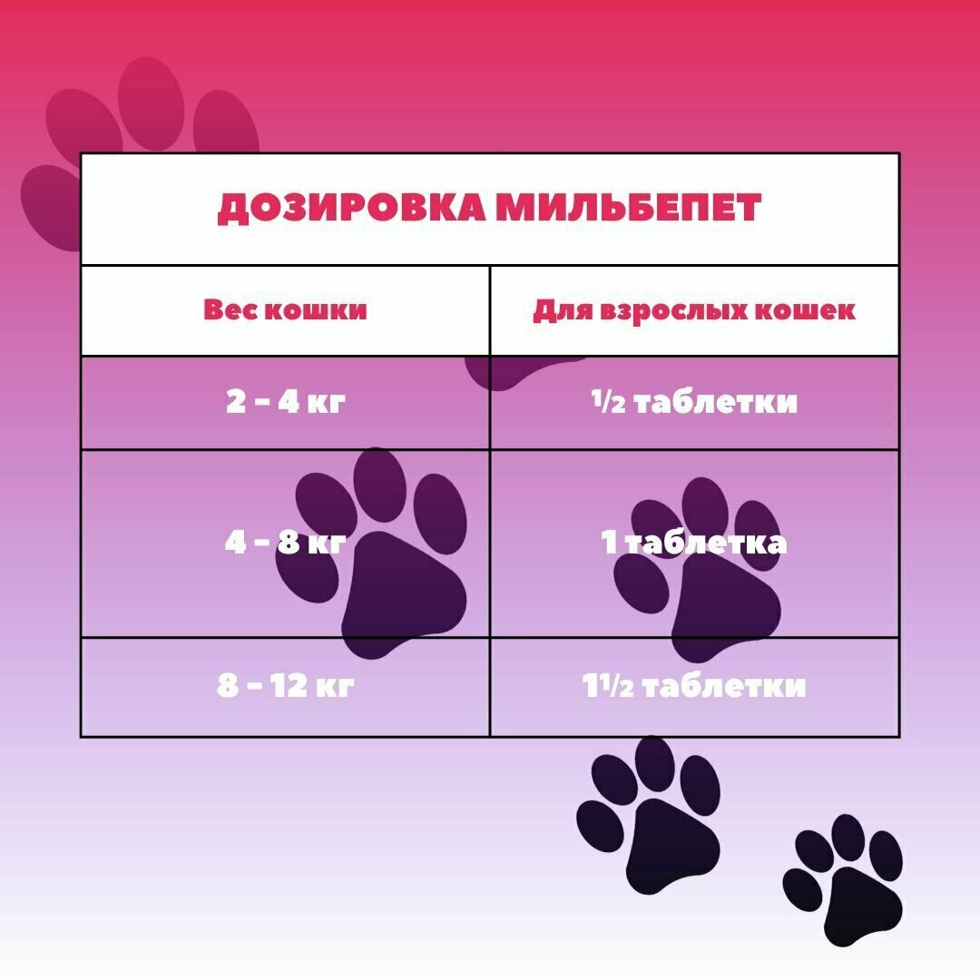 Таблетки от глистов Мильбепет для кошек. Комплексный противопаразитарный препарат направлен на лечение и профилактику основных видов нематод и цестод, а также смешанных инвазий. Основные действующие вещества таблеток – мильбемицина оксим и празиквантел. Такая комбинация двух активных компонентов выбрана неслучайно - согласно многолетним клиническим испытаниям сочетание мильбемицина и празиквантела:оказывает длительное и мягкое воздействие на организмне вызывает побочных эффектовподходит для применения в период беременности и лактациизащищает от дирофилиоза в течение 30 дней после приема