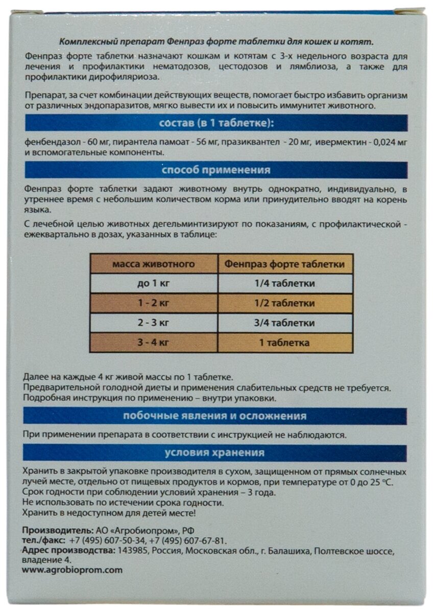 Фенпраз форте таб. для кошек 6шт АО "Агробиопром" (1655600)
