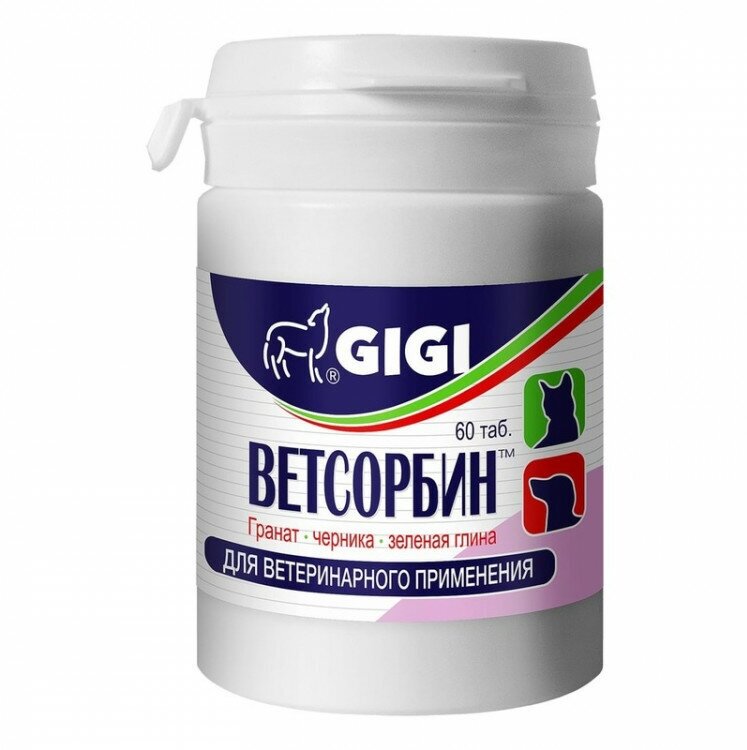 Препарат для нормализации работы кишечника, является адсорбентом с противодиарейными свойствами. Зеленая глина, входящая в состав препаратов – это природный адсорбент, выводящий из организма шлаки и токсины. Вещества, содержащиеся в порошке черники и граната, являются природными источниками витаминов и микроэлементов и способствуют нормализации процесса пищеварения в желудочно-кишечном тракте. Препарат идеально подходит в случаях перехода с одного типа кормления на другой, которые зачастую сопровождаются идиопатической диареей, при отравлениях, бродильных процессах в желудке и кишечнике, заболеваниях пищеварительного тракта вирусной и бактериальной этиологии, а также при пищевых отравлениях, нарушениях диеты, при неблагоприятных экологических условиях, перегрузке организма токсичными, ядовитыми веществами, лекарственными средствами. Также показанием к применению Ветсорбина является преодоление аллергических реакций и обеспечение оптимального функционирования печени и почек.