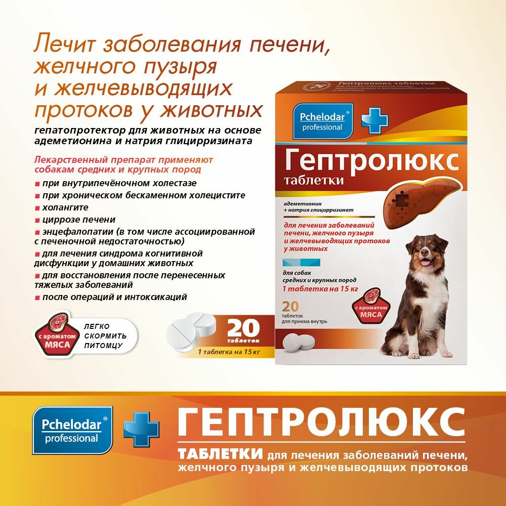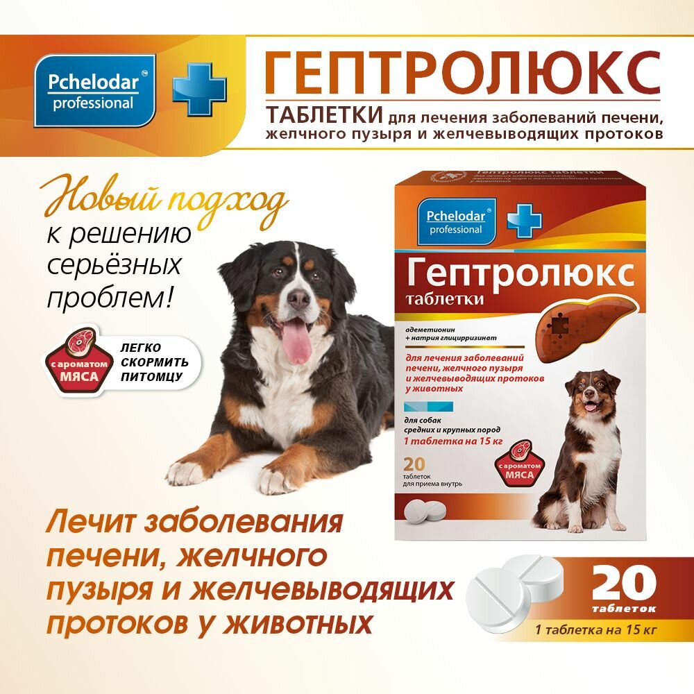 Гептролюкс таб. для собак средних и крупных пород 20шт АО "Агробиопром" (1655600)