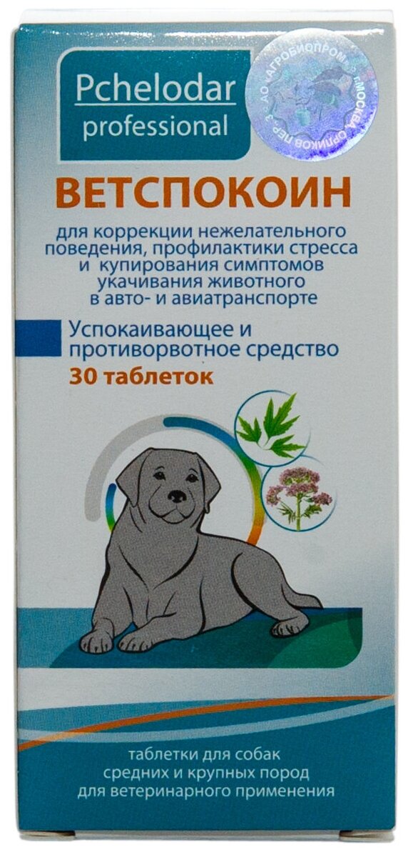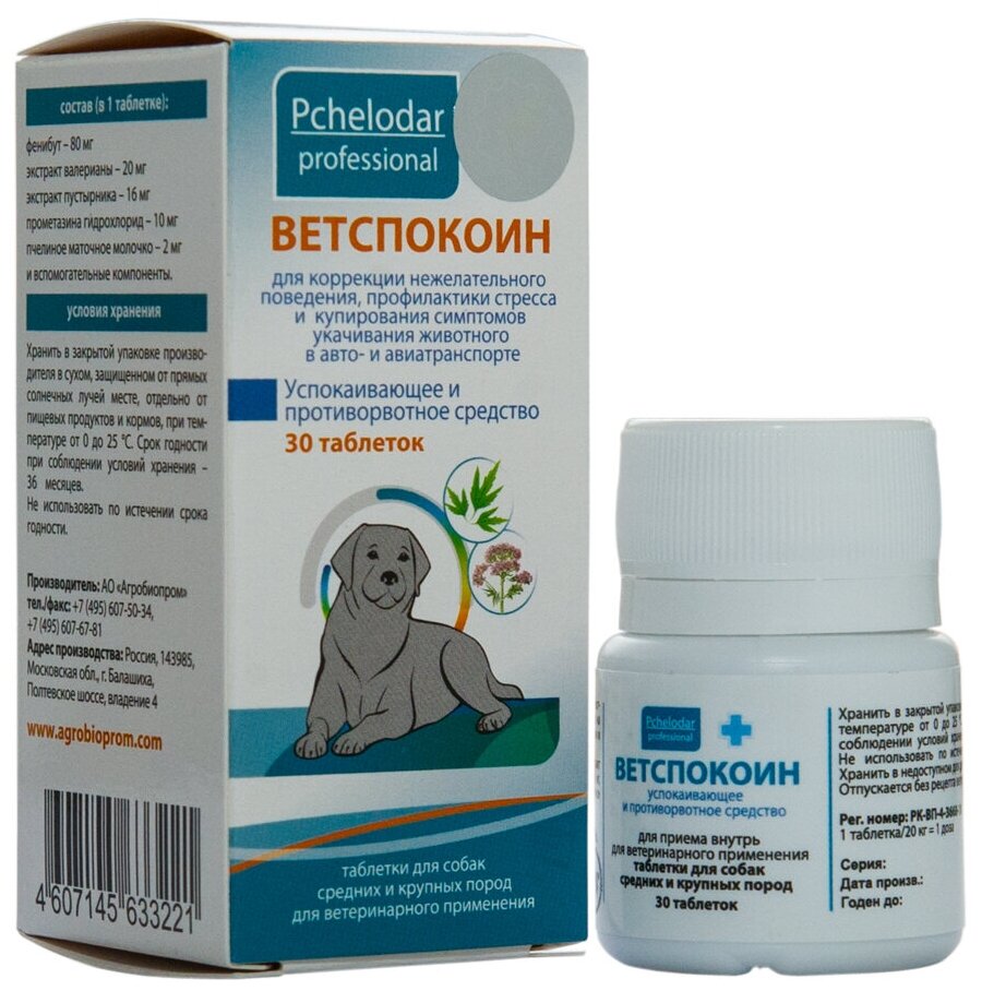 ВетСпокоин таб. для средних и крупных пород собак 30шт АО "Агробиопром" (1655600)