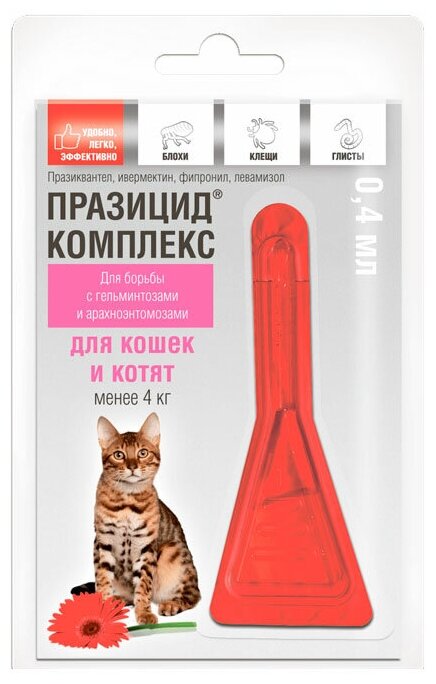 Празицид-комплекс капли на холку для котят и кошек менее 4кг 04мл ООО "Апиценна" (1655602)