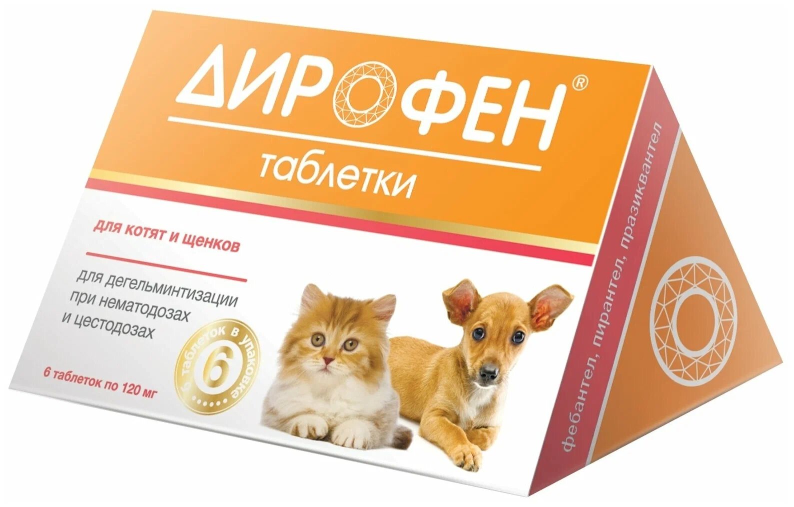 Дирофен таблетки для котят и щенков 120мг 6шт ООО "Апиценна" (1655602)
