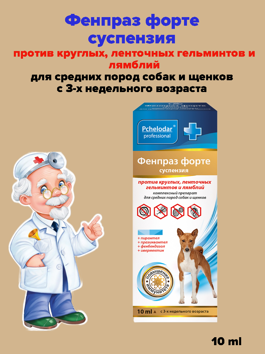 Фенпраз форте сусп. для средних пород собак 10мл АО "Агробиопром" (1655600)