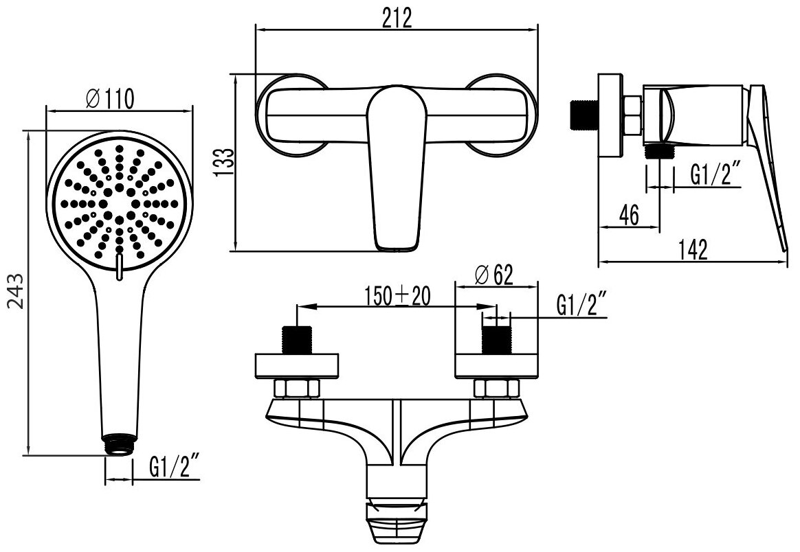 | ВКоробке | Смеситель - 1 шт. Лейка - 1 шт. Шланг - 1 шт. Настенный держатель - 1 шт. Эксцентрик - 2 шт. Инструкция - 1 шт. |