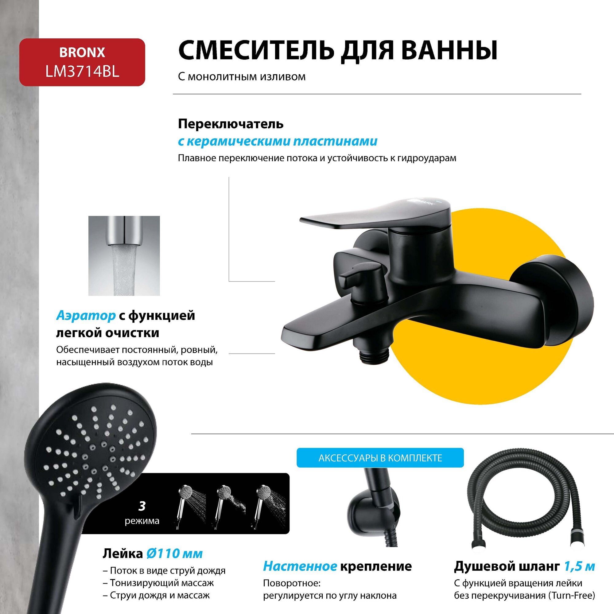Смеситель для ванны Lemark Bronx LM3714BL Черный