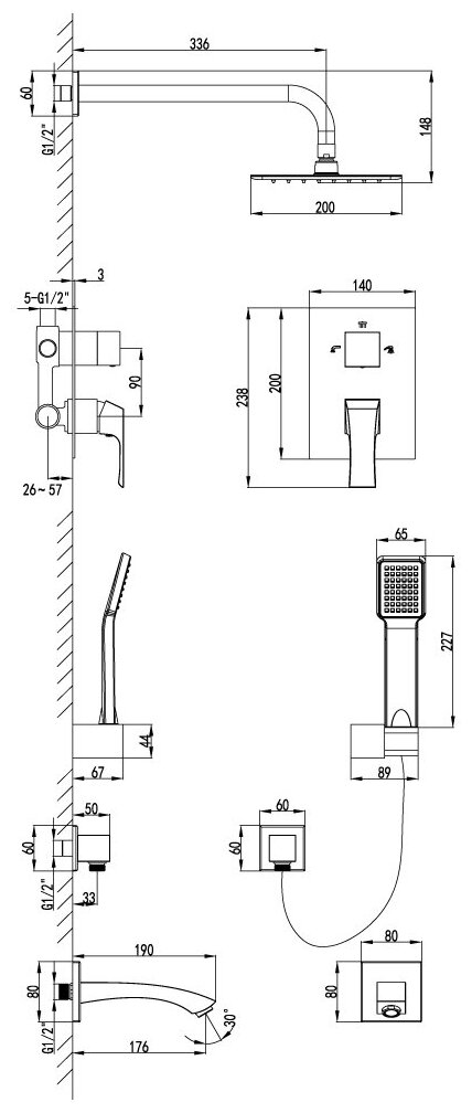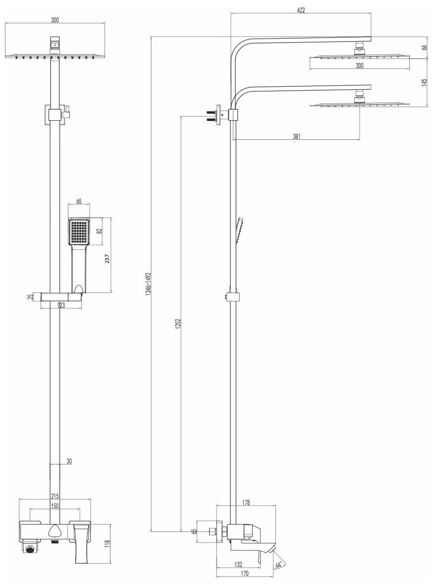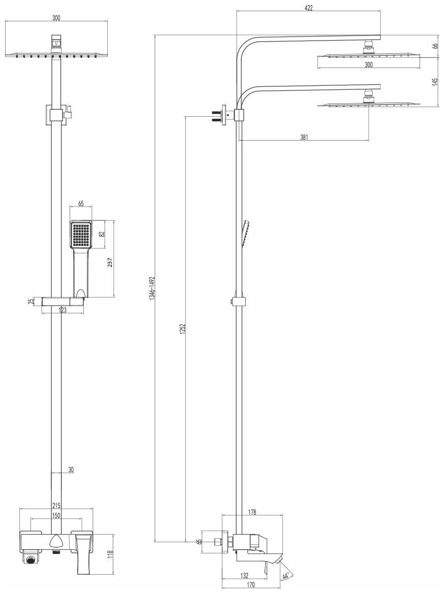 | ВКоробке | Душевая стойка - 1 шт. Верхний душ - 1 шт. Лейка - 1 шт. Шланг - 1 шт. Смеситель - 1 шт. Инструкция - 1 шт. |