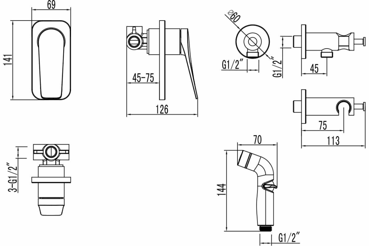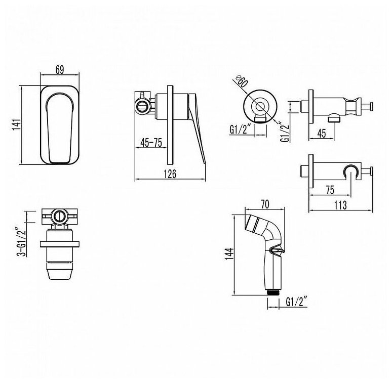 | ВКоробке | Гигиенический душ - 1 шт. Смеситель - 1 шт. Монтажная часть - 1 шт. Настенный держатель - 1 шт. Шланг - 1 шт. Шланговое подключение - 1 шт. Инструкция - 1 шт. |