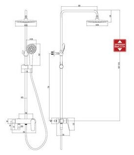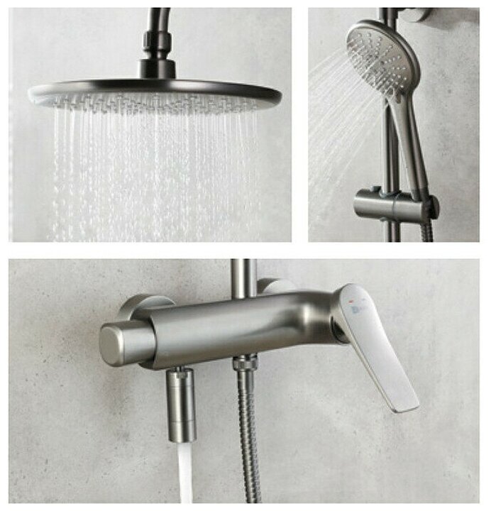 | ВКоробке | Душевая стойка - 1 шт. Верхний душ - 1 шт. Лейка - 1 шт. Шланг - 1 шт. Смеситель - 1 шт. Эксцентрик - 2 шт. Инструкция - 1 шт. |