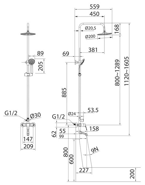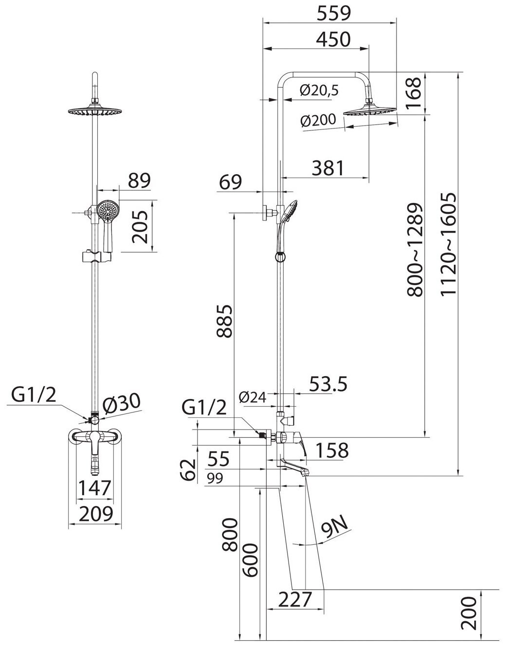 | Размеры / диаметр головки верхнего душа (см) | 20 |