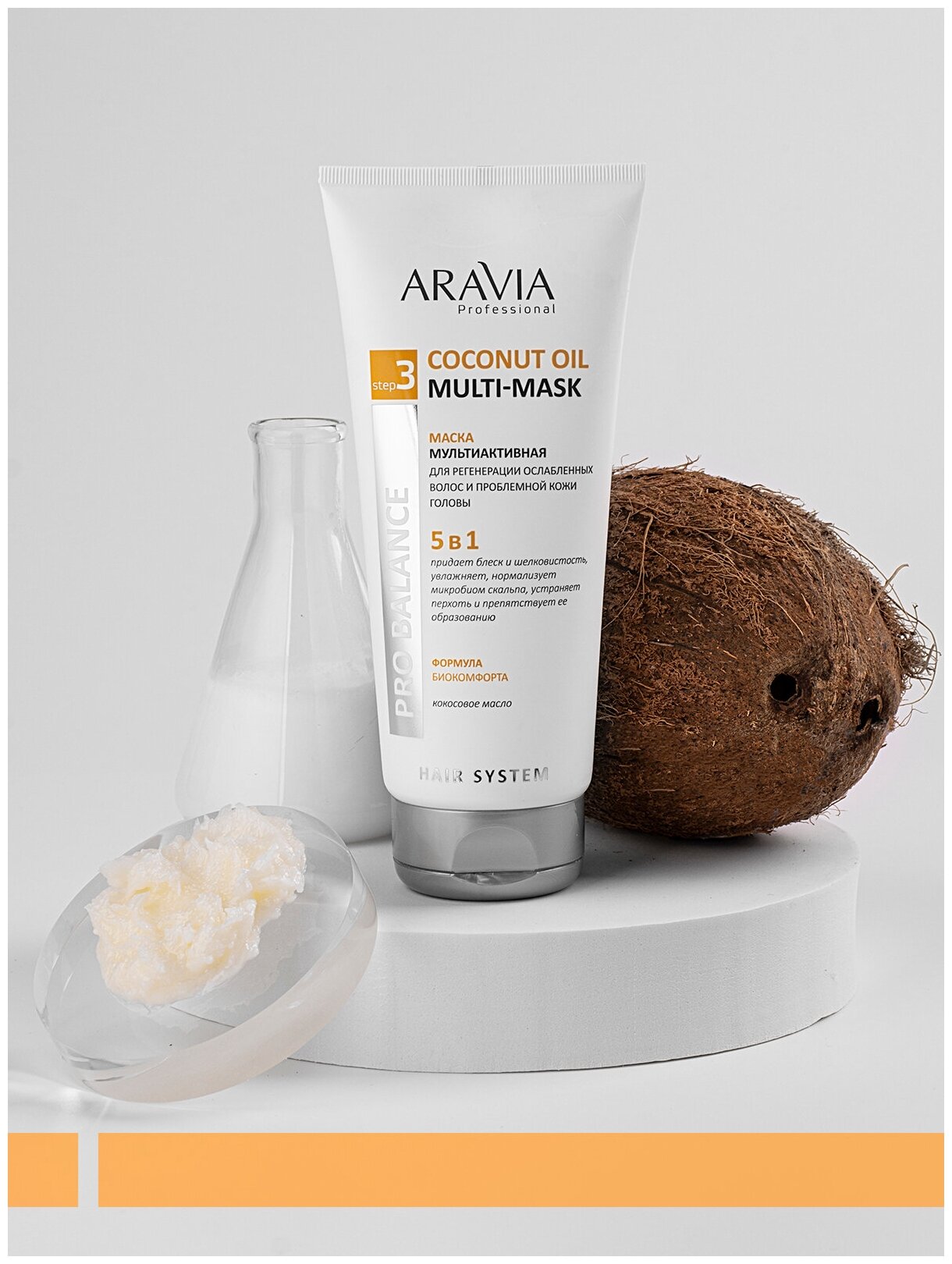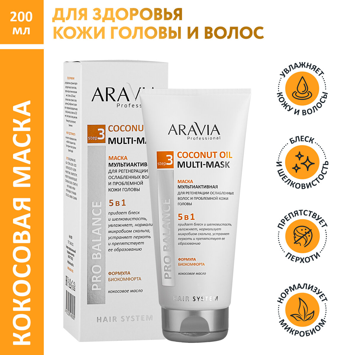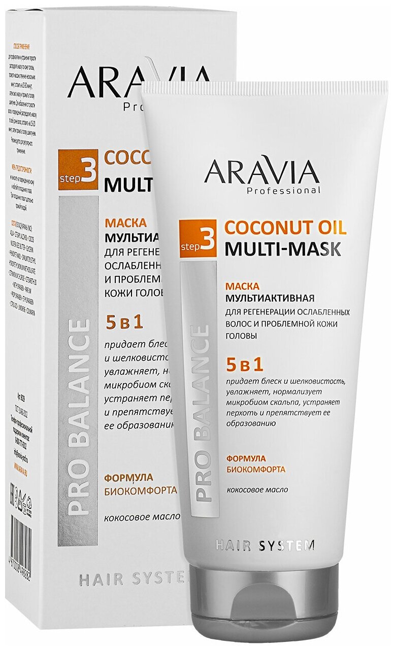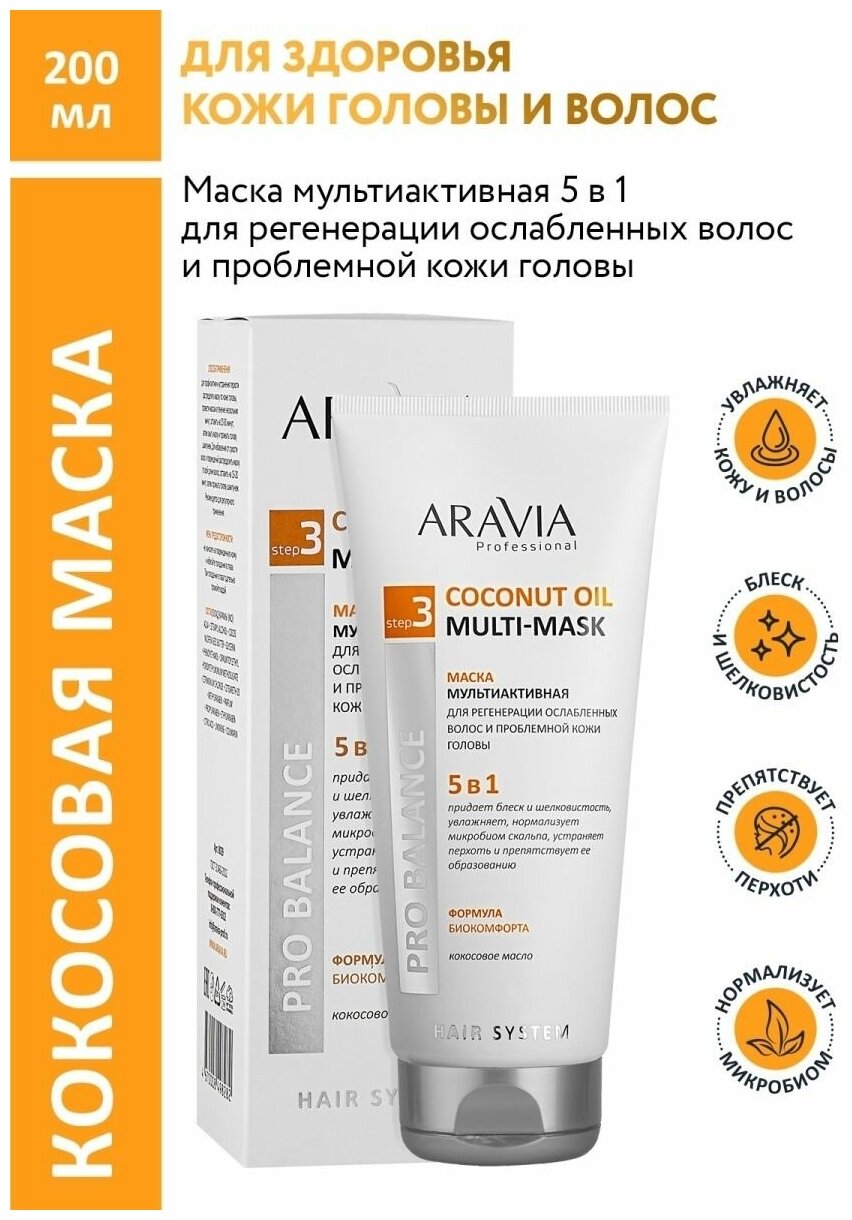 Aravia Professional Маска мультиактивная 5 в 1 для регенерации ослабленных волос и проблемной кожи головы Coconut Oil 200 мл (Aravia Professional ) (ЭХ99989423517)