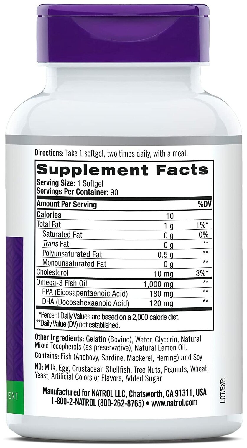 Natrol Omega-3 Fish Oil 1000 мг 90 капсул (Natrol ) (ЭХ99989422112)