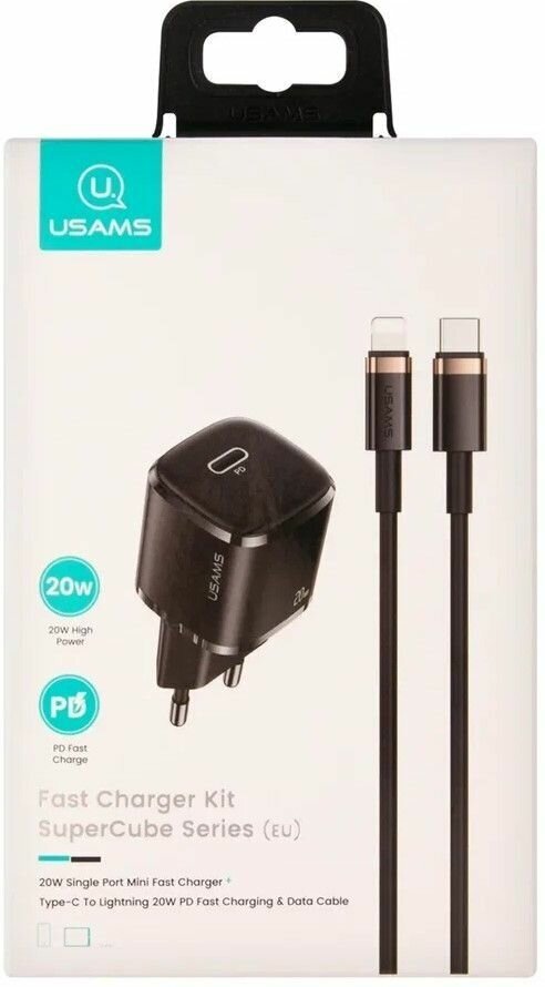 Сетевое зарядное устройство USAMS US-CC124 USB type-C 8-pin Lightning (Apple) 3A черный Noname УТ000023225