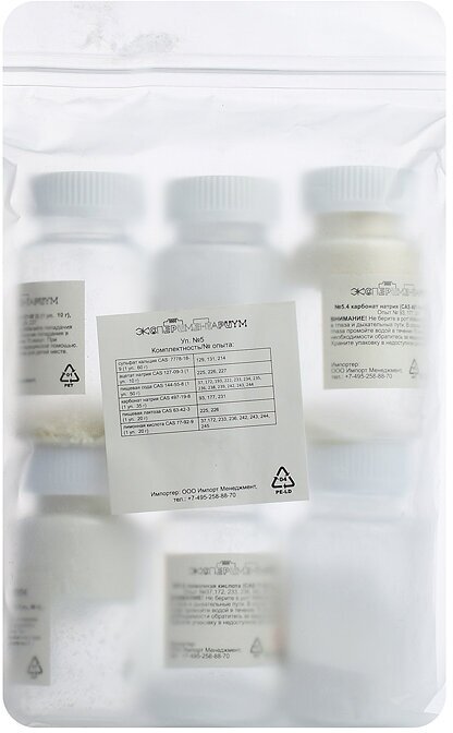| Состав набора | пробирки, кристаллы, жидкости для опытов |