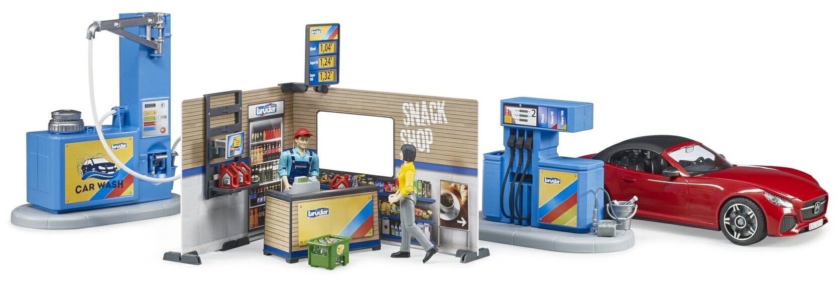 Самый большой и интересный набор в коллекции Bruder - автозаправка с магазином.