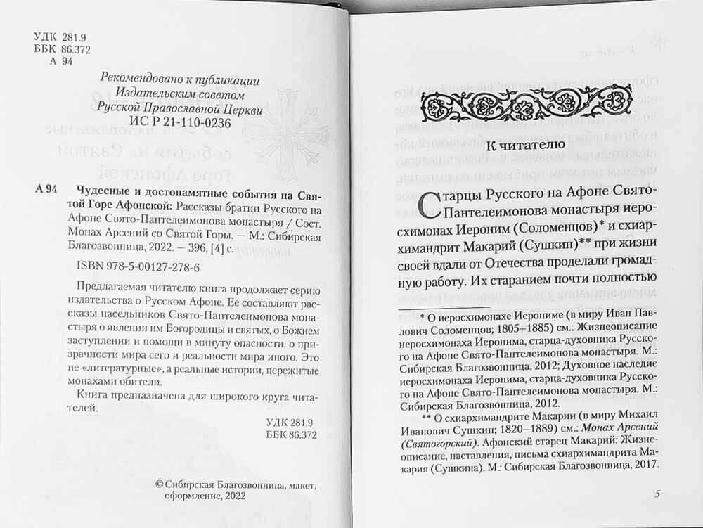 Чудесные и достопамятные события на Святой Горе Афонской (Группа авторов); Сибирская Благозвонница, 2022