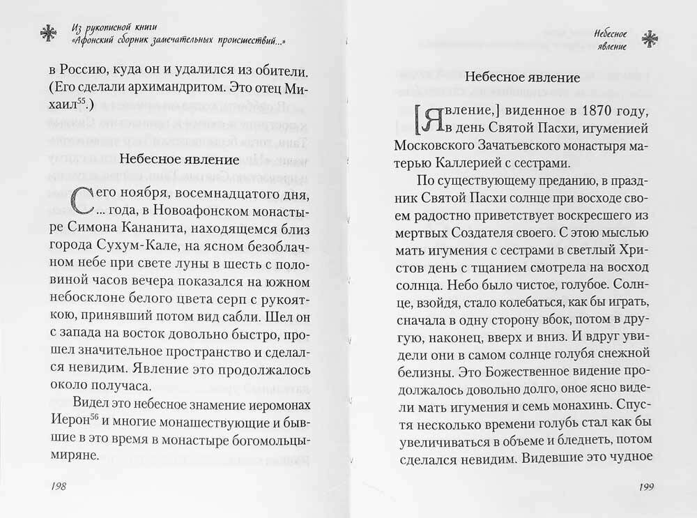 Предлагаемая читателю книга продолжает серию издательства о Русском Афоне. Ее составляют рассказы насельников Свято-Пантелеимонова монастыря о явлении им Богородицы и святых, о Божием заступлении и помощи в минуту опасности, о призрачности мира сего и реальности мира иного. Это не "литературные", а реальные истории, пережитые монахами обители.