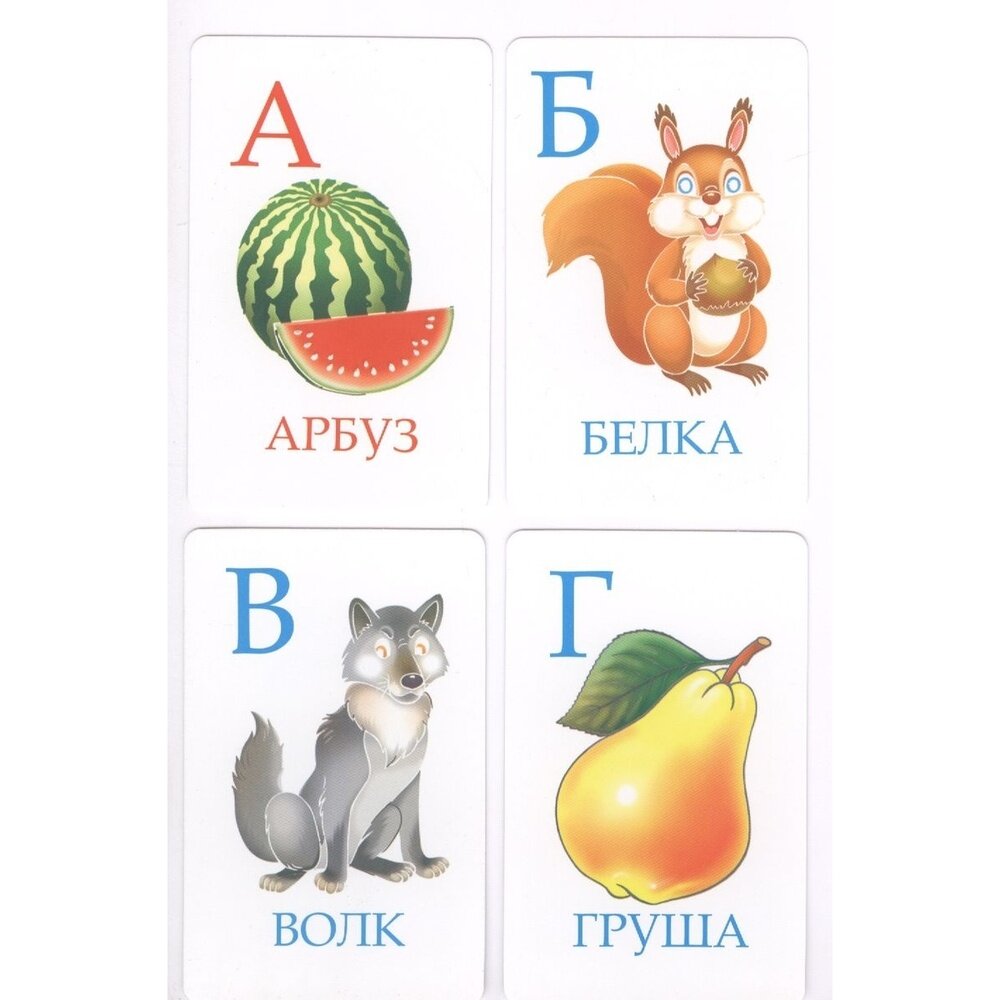Карточки удобного размера в виде игральных карт. Картинки нормальные. Но есть ОГРОМНЫЙ минус - очень жаль, что товарищи, выпускающие эти карточки, забыли что в русском алфавите 33 буквы - "Ь" - вы не найдёте. В комплекте написано 36 карточек - так и есть - но это 32 буквы ( без мягкого знака) и 4 знака препинания. Как можно обучать детей чтению - без мягкого знака. Очень жаль.