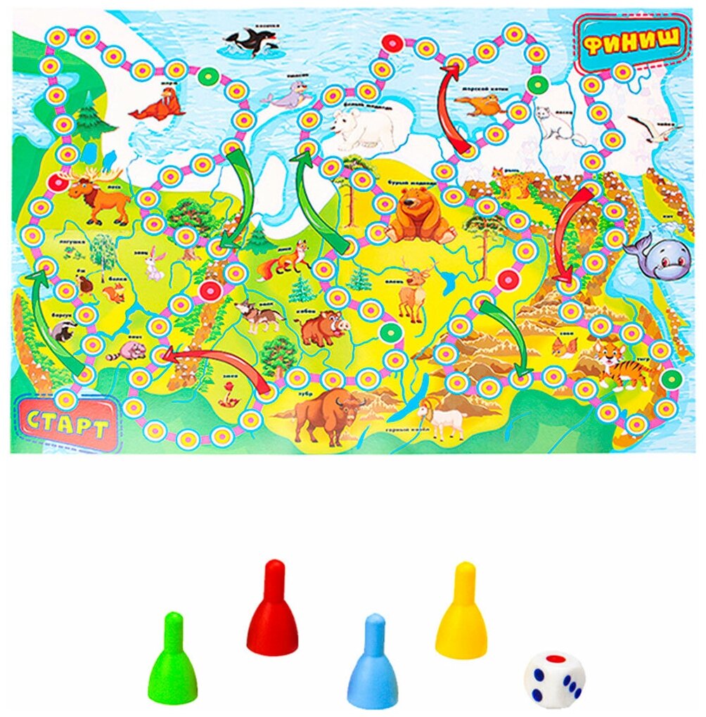 Настольная игра "Животный мир России" - это настоящее увлекательное путешествие по животному миру нашей страны, в которое вам захочется отправиться с друзьями. Вы узнаете, какие животные обитают в нашей стране, как они выглядят, а также посоревнуетесь, кто первый придёт к финишу.