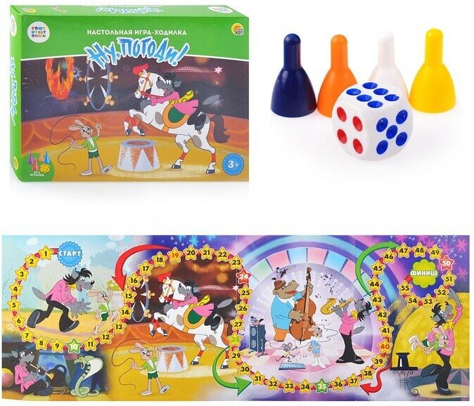 Настольная игра-ходилка "Ну, погоди!" СМФ - это увлекательная игра для детей и взрослых, которая позволит вам окунуться в мир приключений Волка и Зайца из популярного мультфильма "Союзмультфильм".Игра предназначена для детей от 7 до 18 лет и является отличным способом провести время вместе, развивая при этом логическое мышление, внимательность и умение работать в команде.В игре "Ну, погоди!" Волк пытается поймать Зайца, используя различные хитрости и уловки. Заяц же должен быть осторожен и не попасться в ловушку. Игра учит детей быть внимательными и предусмотрительными, а также развивает стратегическое мышление.Игра выполнена в жанре бродилки, что делает ее еще более интересной и захватывающей. Игроки перемещаются по игровому полю, выполняя различные задания и преодолевая препятствия. Это не только развлекает, но и тренирует память, внимание и реакцию.Игра "Ну, погоди!" СМФ - это отличный способ провести время с друзьями и семьей, развивая при этом полезные навыки и получая массу удовольствия.