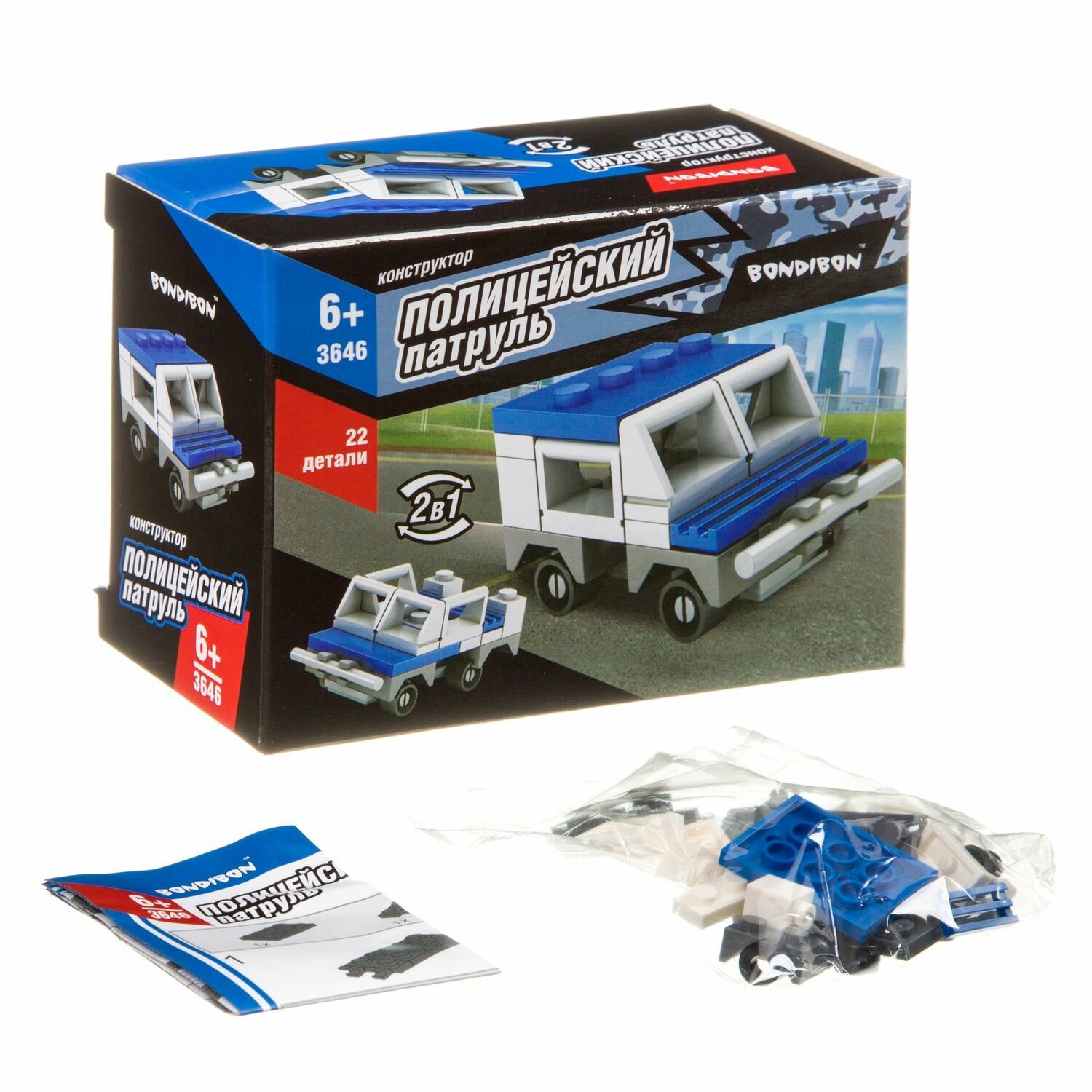 Конструктор 2 в 1 "Полицейский патруль. Машина" (22 детали) (ВВ3646) Bondibon