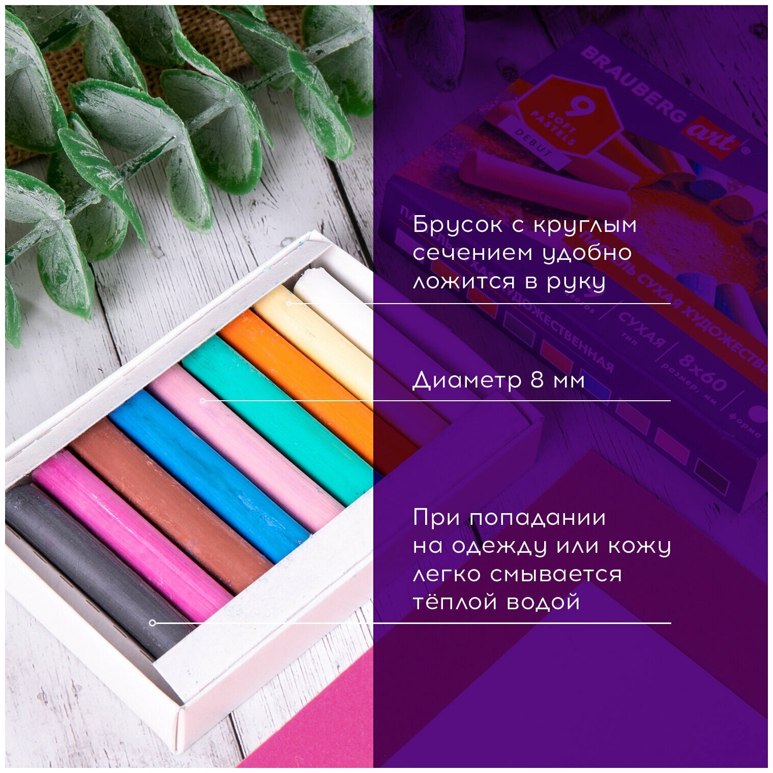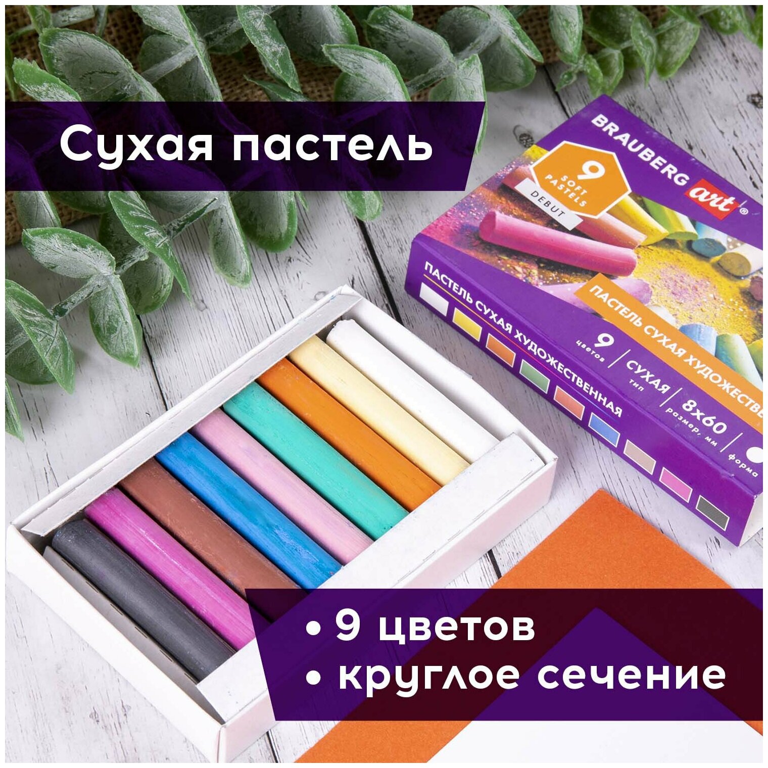 Пастель художественная сухая 9 цветов "ART DEBUT" (181459) Brauberg