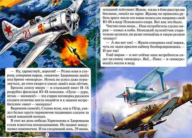 С моей точки зрения, книга ни о чём. О подвигах во время войны написано гораздо интереснее, лучше, и, простите- чище. Как-то я просмотрела, что эта книга выпущена под эгидой РПЦ. Построение текста с бухты- барахты, нет единого монолитного рассказа. Всё в кучу, и история авиации, и описание подвига, и биография героя, и выдержки из Евангелия, сталинских газет и истории немецких и японских камикадзе. На книгу нашла две опечатки. Не годится даже для написания сочинения, уж очень понакидано всего до всего и ни о чём конкретно