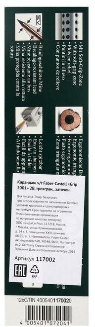 Чернографитный карандаш FABER-CASTELL серии "Grip 2001" поставляется в эргономичном трехгранном корпусе в серебристом цвете.