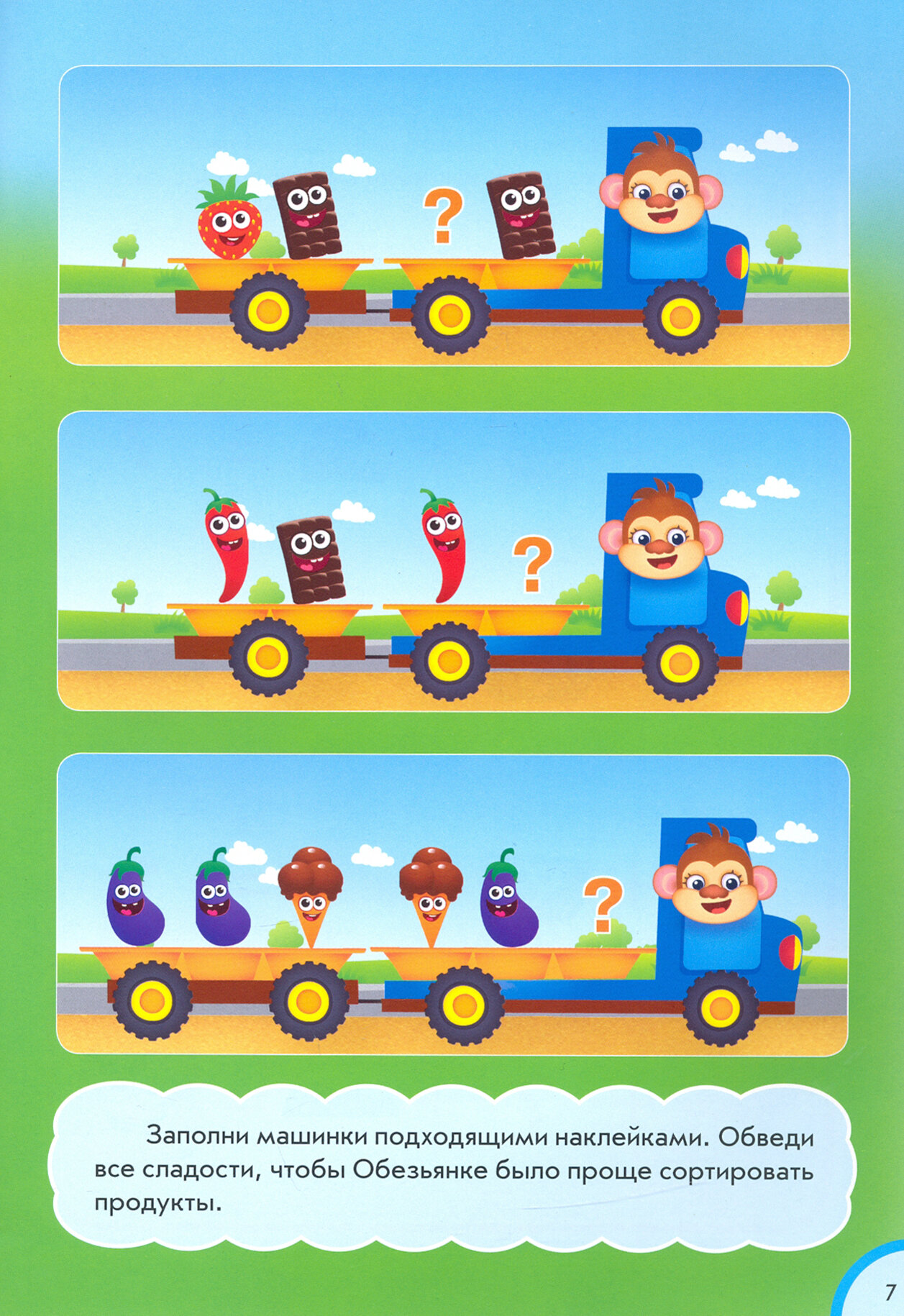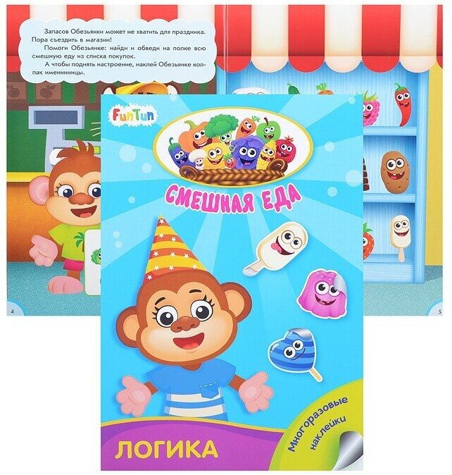В этой книжечке ребёнка ждут самые разные развивающие логические задания и история про Обезьянку, которая пригласила друзей на день рождения. Забавные глазастые тыковки, морковки, зефирки и многие другие смешные персонажи порадуют вашего ребёнка и дадут чудесную возможность изучить самые разные продукты.