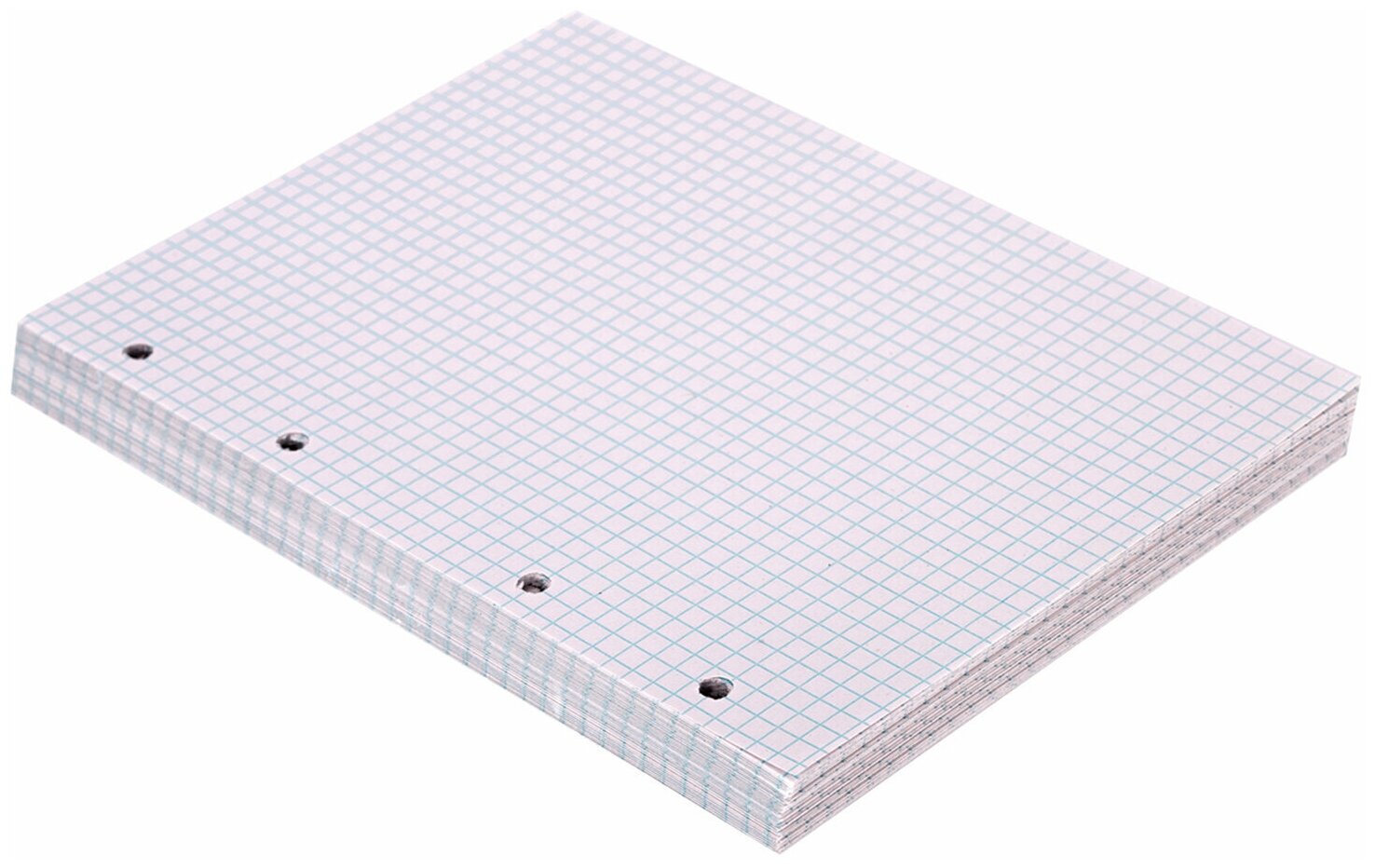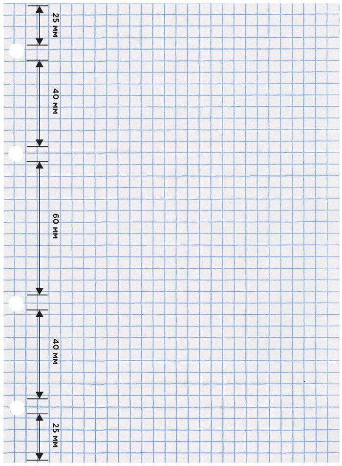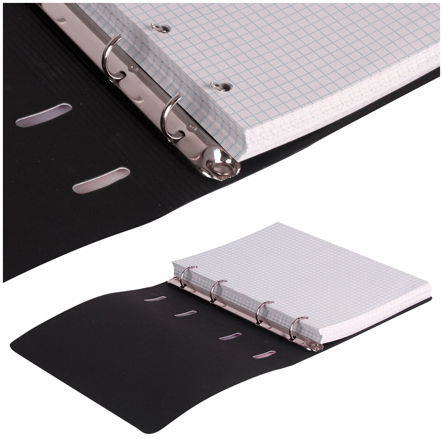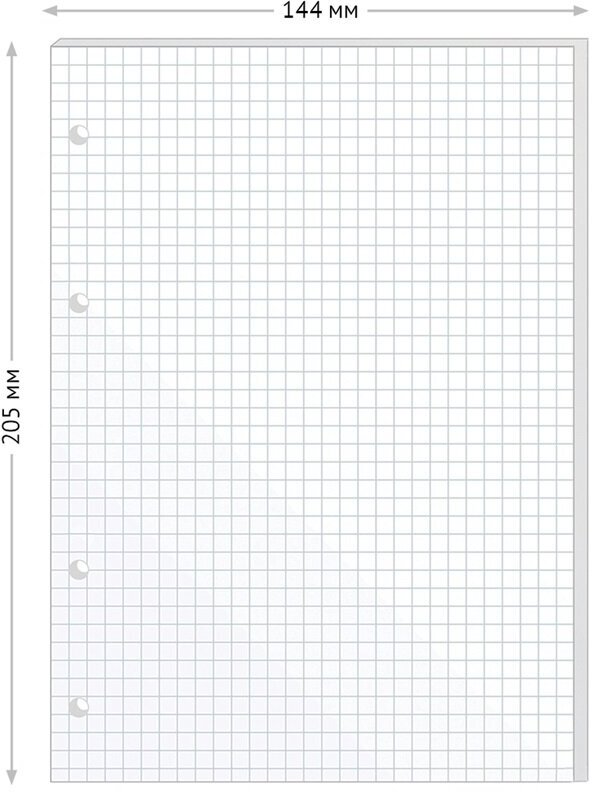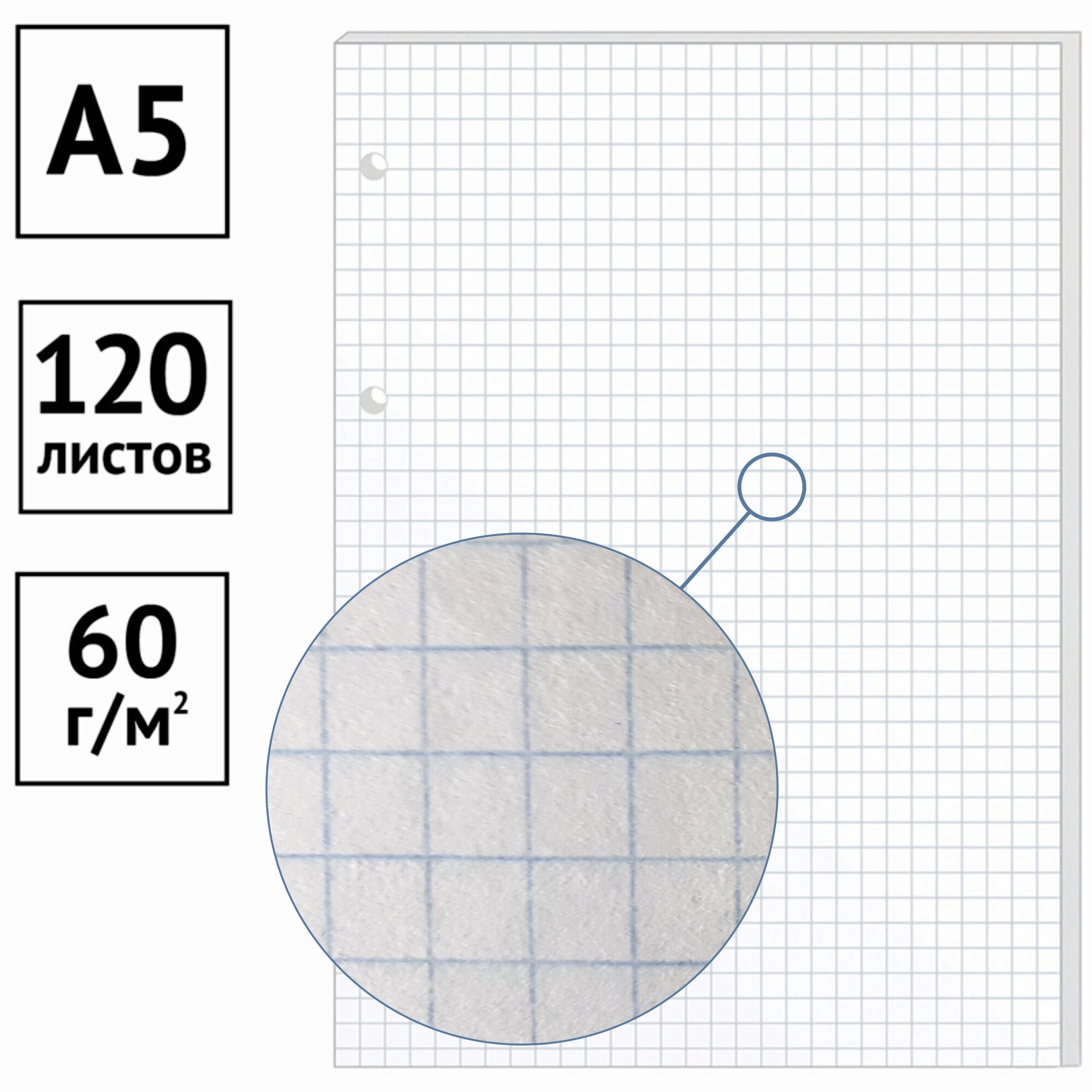 Подходит для всех тетрадей на кольцах формата А5. Внутренний блок содержит 120 листов белой, офсетной бумаги плотностью 60 г/м2. Линовка — в клетку без полей. Упакован в термопленку.