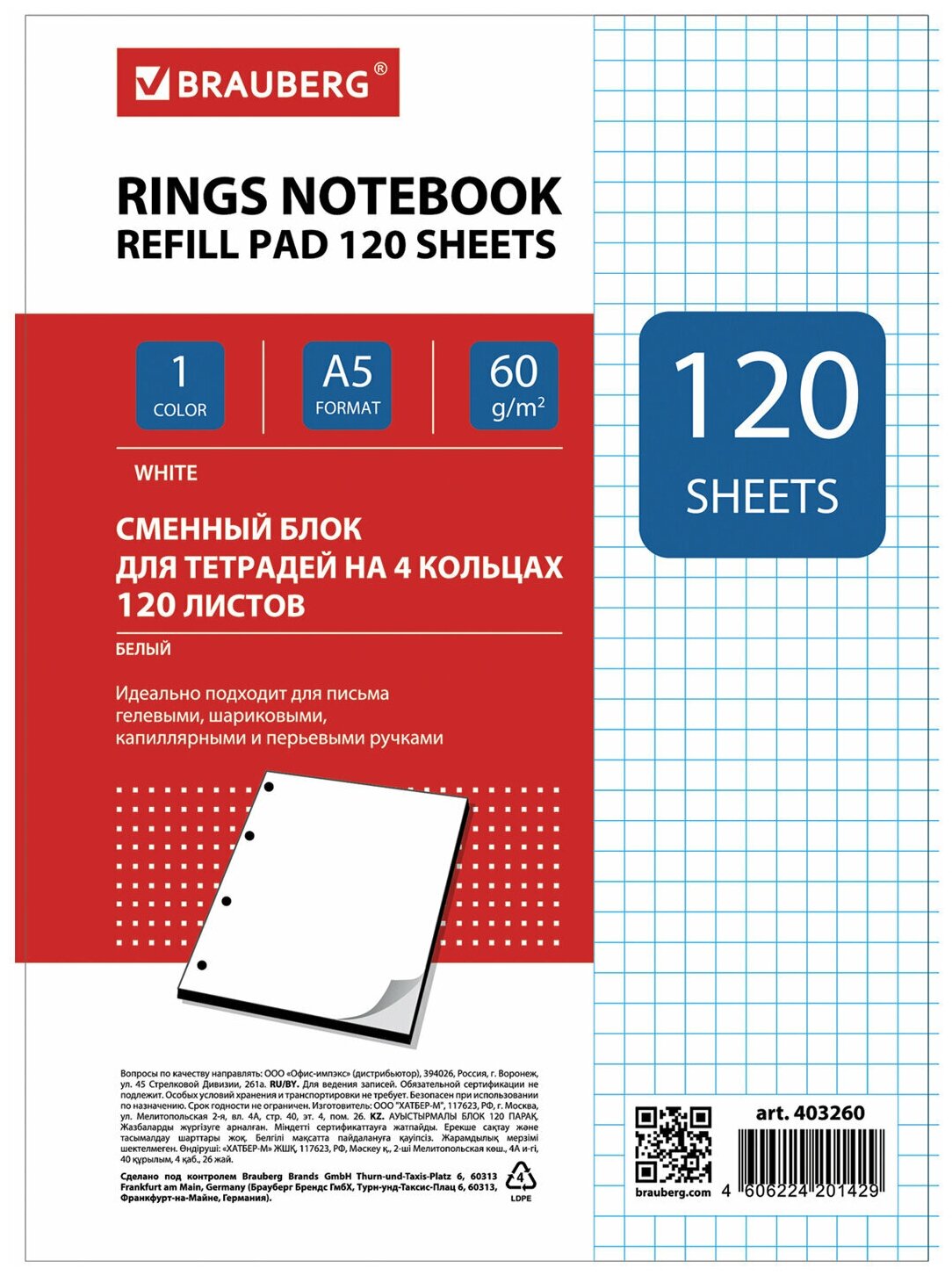 Сменный блок А5 120 листов BRAUBER Белый (403260) Brauberg