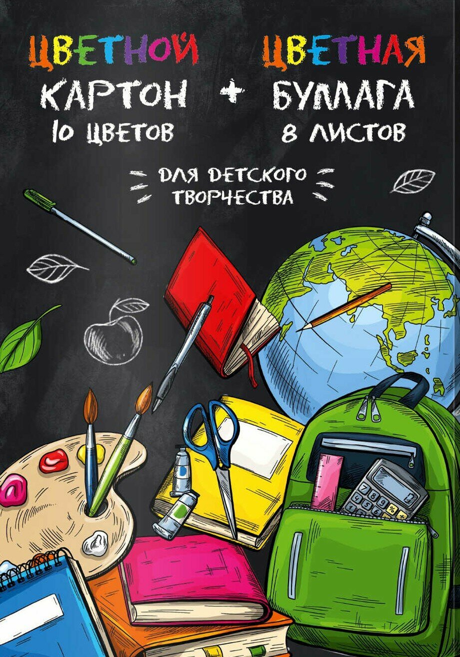 Картон Школа цветной 10 цветов + бумага цветная 8 цветов 26 листов А4 Феникс+