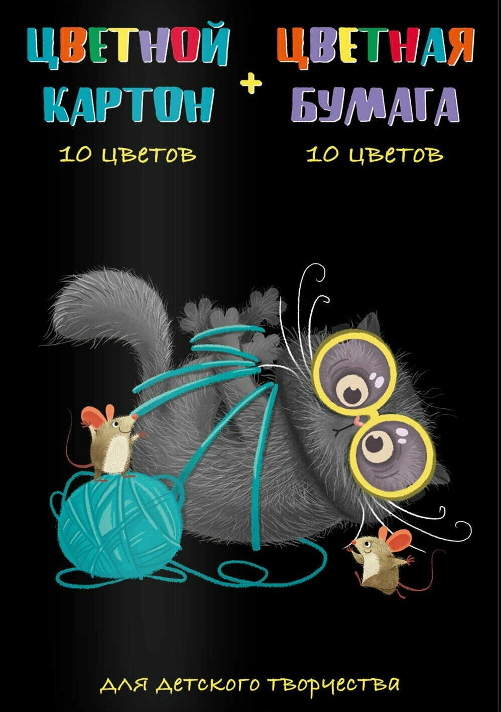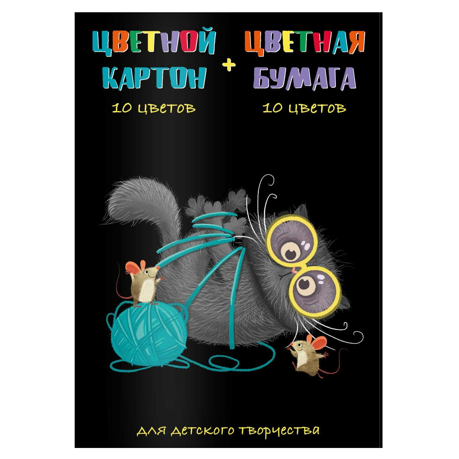 Картон Кот цветной 10 цветов + бумага цветная 8 цветов 26 листов А4 Феникс+
