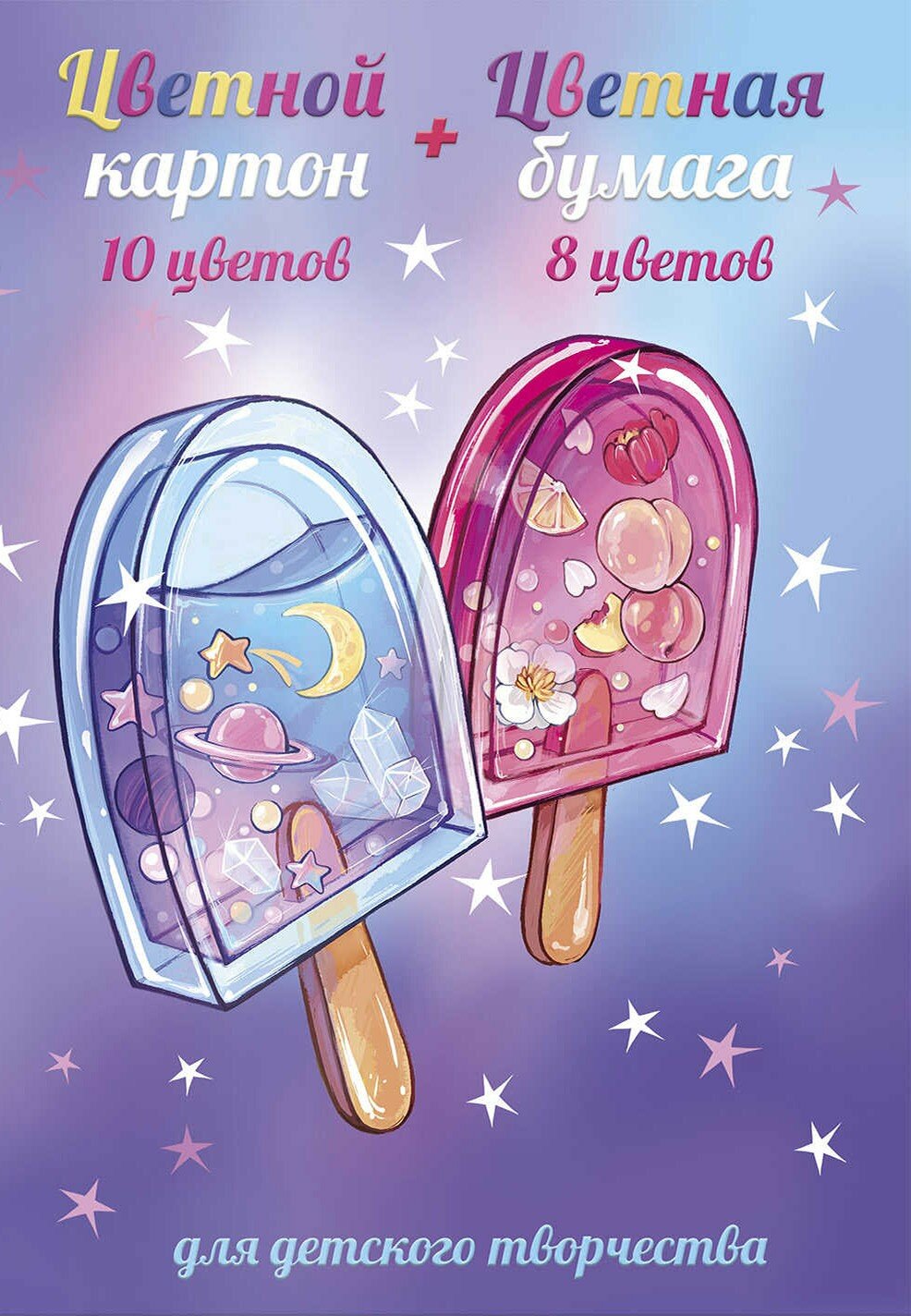 Цветной картон + цветная бумага МОРОЖЕНОЕ 10 цветов картона 8 цветов бумаги Феникс+