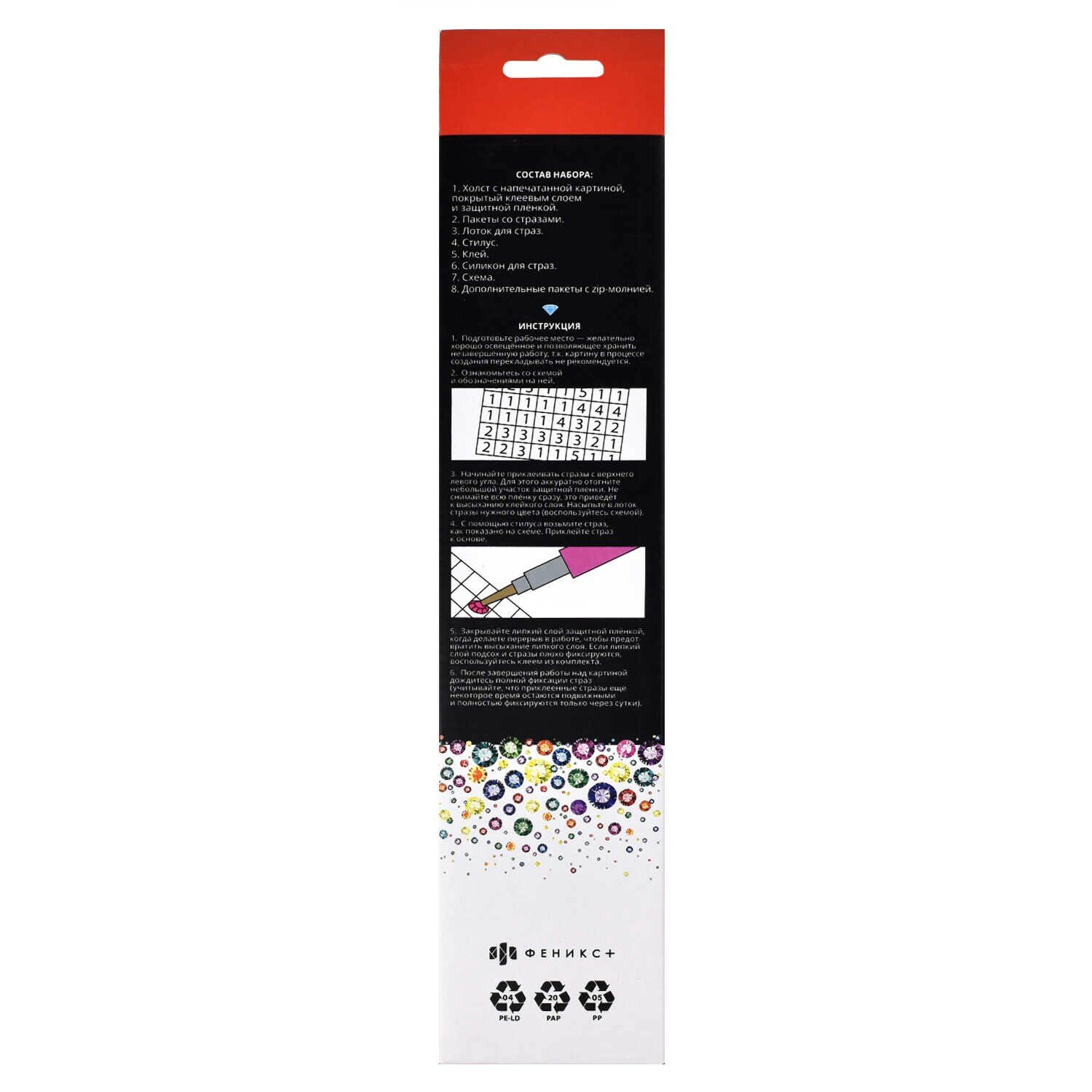 | Комплектация | стразы, холст с напечатанной картиной, покрытый клеевым слоем и защитной пленкой, пакеты со стразами, лоток для страз, стилус, силикон для страз, клей, схема, дополнительные пакеты |