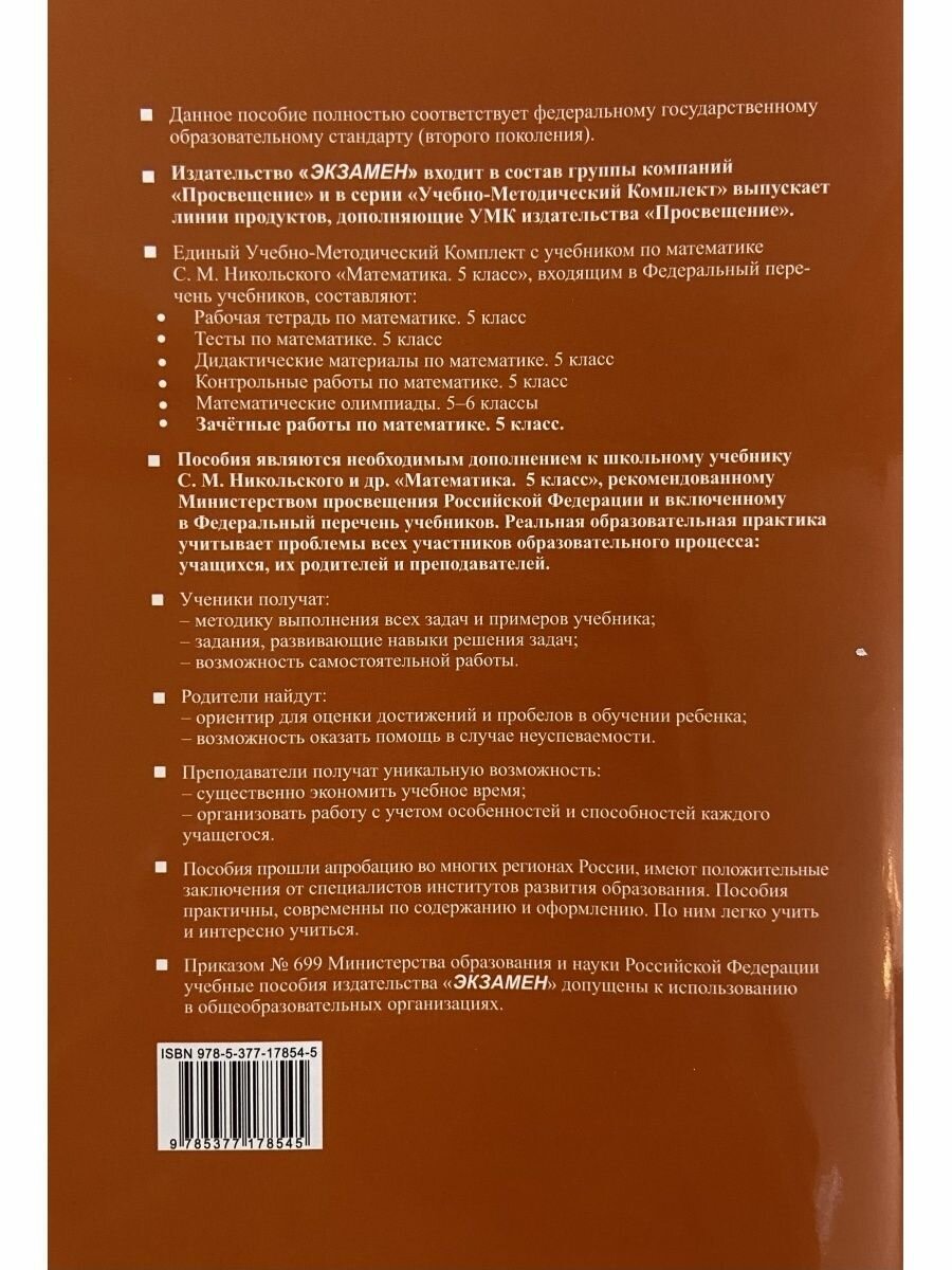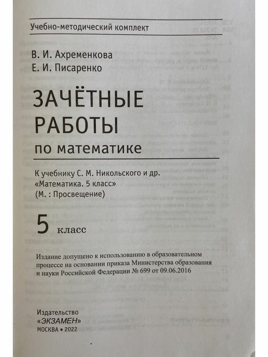 Зачетные работы по математике 5 класс К учебнику С М Никольского и др (Ахременкова Вера Игоревна, Писаренко Елена Игоревна); Экзамен, 2022