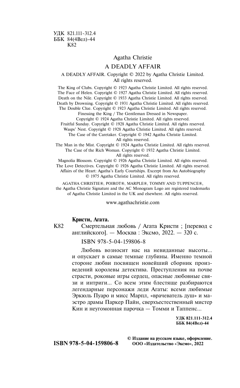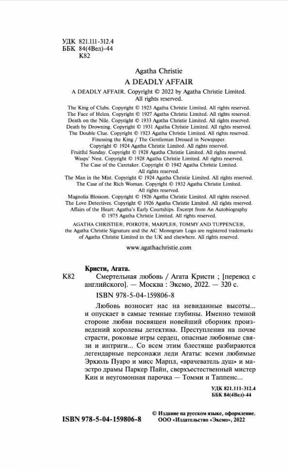 Книга: Смертельная любовь (Агата Кристи); Эксмо, Редакция 1, 2024