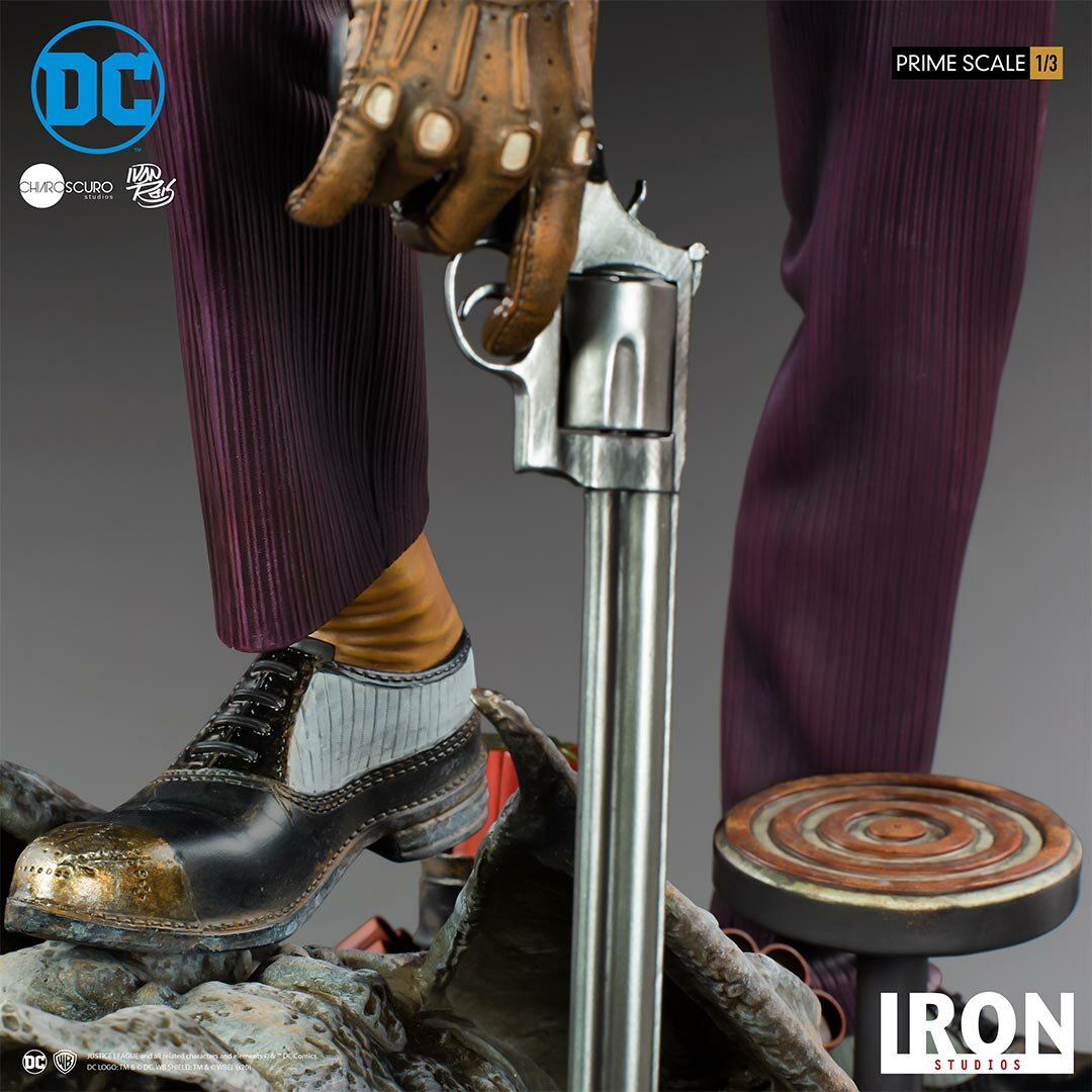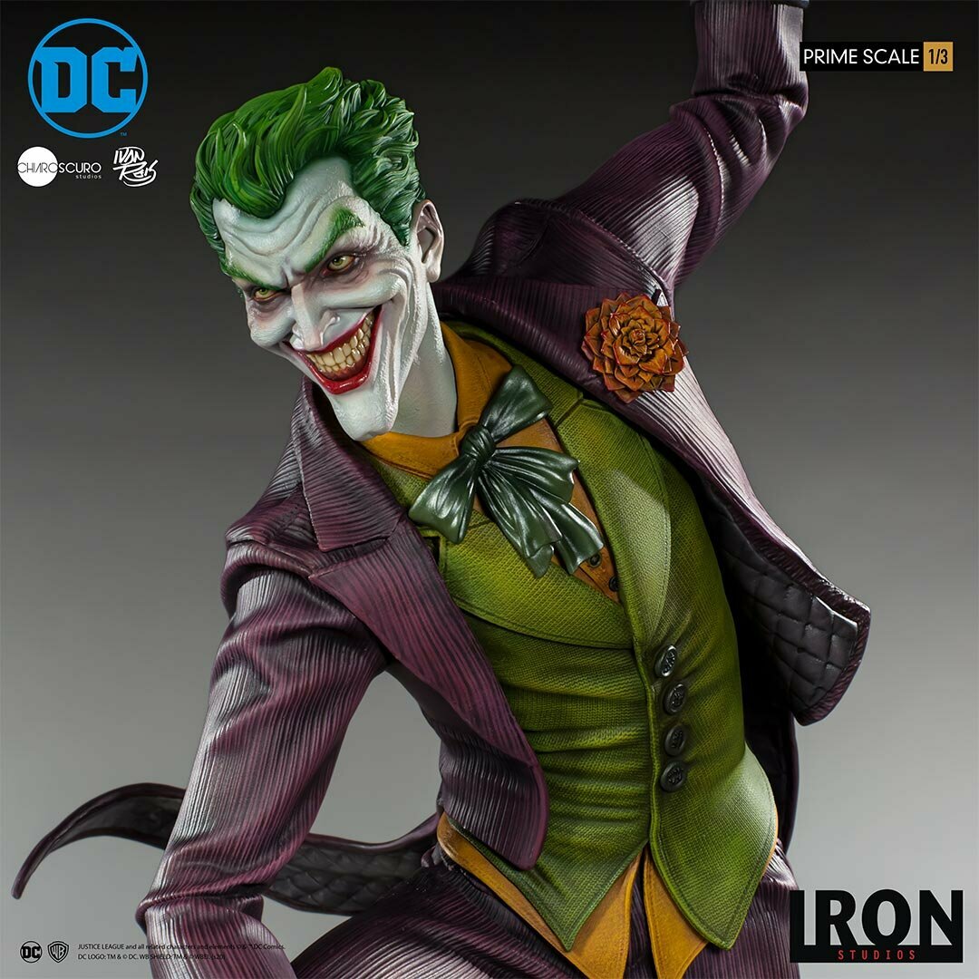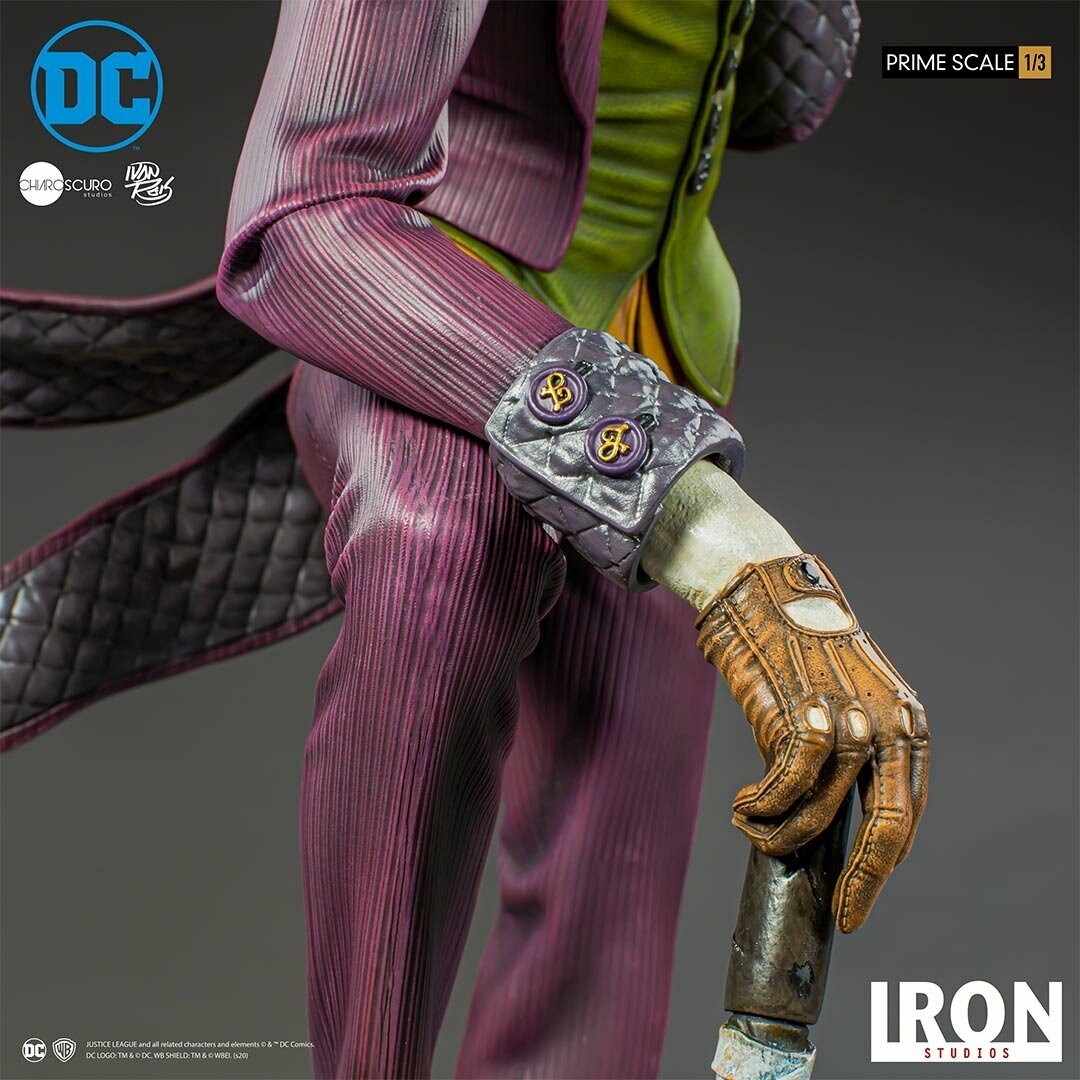 Статуэтка DC Comics Joker Prime Scale 1/3 – DC Comics by Ivan ReisМасштабная детализированная основанная на концепт-арте Ивана Рейса статуэтка Джокера просто впечатляет своей реалистичностью и размерами. Сделанная в масштабе 1/3, статуэтка достигает в высоту 84 сантиметров.Статуэтка сделана из полистоуна - искусственного камня, отличающегося прочностью. Все детали Джокера окрашены полностью вручную, а сама статуэтка отличается потрясающей детализацией. Добавьте к этому множество деталей и отсылок на пьедестале и в костюме, а также сменные лица и руки - и вот идеальная статуэтка для фаната DC готова.В комплекте с фигуркой идут 2 сменных головы (стандартная и со шрамами), 2 сменных левых руки (с картами и тростью) и 2 сменных правых руки (с револьвером и деревянным молотом).