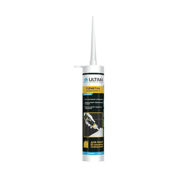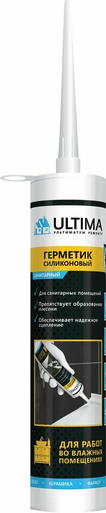 Санитарный герметик Ultima S на силиконовой основе применяется при проведении работ в помещениях с повышенной влажностью. Герметик образует водостойкое соединение, имеет в составе антигрибковые добавки, препятствуют появлению плесени.