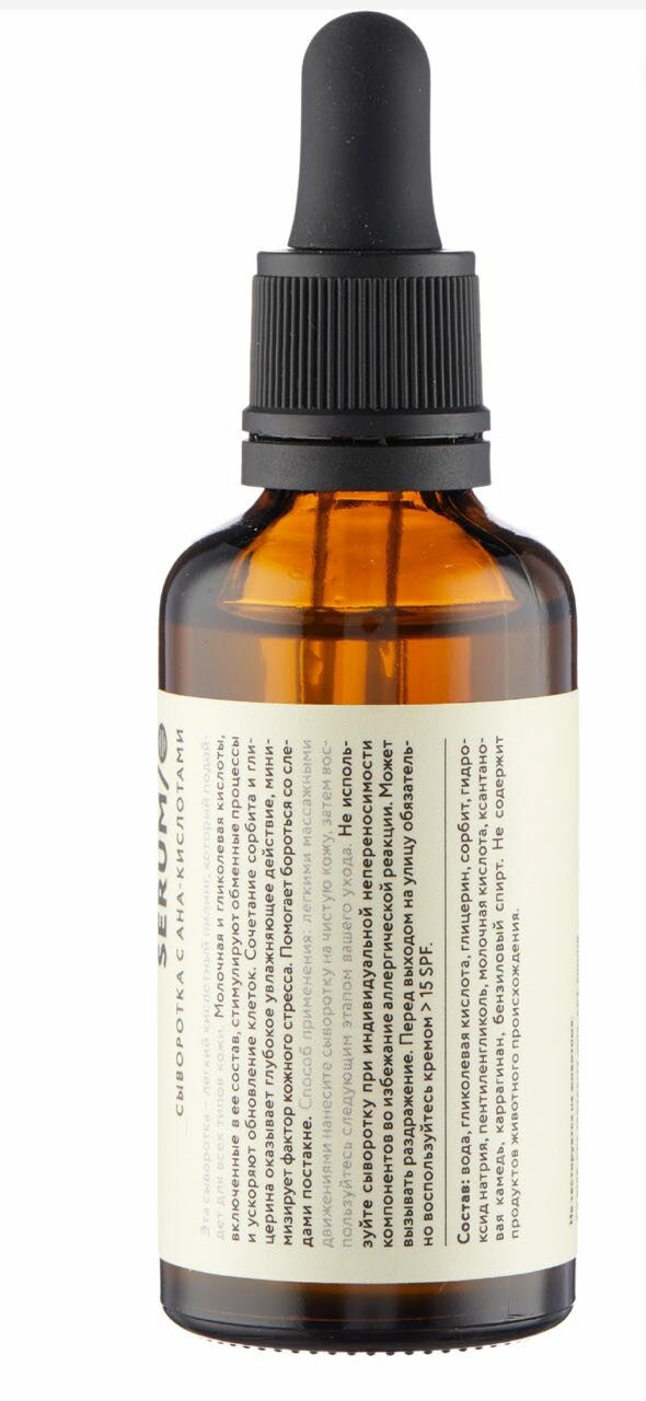 Эта сыворотка - легкий кислотный пилинг, который подойдет для всех типов кожи. Молочная и гликолевая кислоты, включенные в ее состав, стимулируют обменные процессы и ускоряют обновление клеток. Сочетание сорбита и глицерина оказывает глубокое увлажняющее действие, минимизирует фактор кожного стресса. Помогает бороться со следами постакне. Способ применения: легкими массажными движениями нанесите сыворотку на чистую кожу, избегая области вокруг глаз, затем воспользуйтесь следующим этапом вашего ухода. ! Не используйте сыворотку при индивидуальной непереносимости компонентов во избежание аллергической реакции. ВНИМАНИЕ! Может вызывать раздражение. Перед выходом на улицу обязательно воспользуйтесь кремом >15 SPFСостав: вода, гликолевая кислота, глицерин, сорбит, гидроксид натрия, пентиленгликоль, молочная кислота, ксантановая камедь, каррагинан.