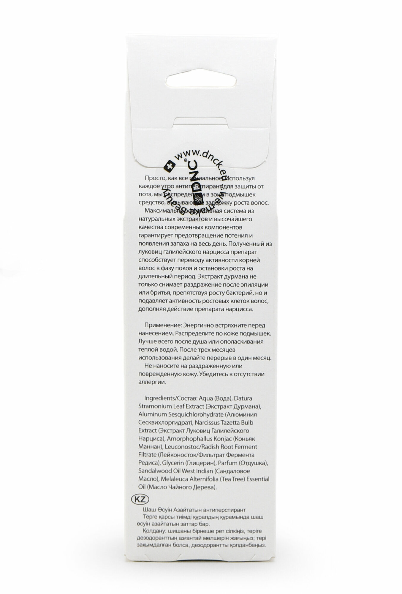 Антиперспирант DNC Уменьшающий рост волос, 50 млПросто, как все гениальное! Используя каждое утро антиперспирант для защиты от пота, мы распределяем в зоне подмышек средство, вызывающее задержку роста волос. Максимально эффективная система из натуральных экстрактов и высочайшего качества современных компонентов гарантирует предотвращение потения и появления запаха на весь день. Полученный из луковиц галилейского нарцисса препарат способствует переводу активности корней волос в фазу покоя и остановки роста на длительный период. Экстракт дурмана не только снимает раздражение после эпиляции или бритья, препятствуя росту бактерий, но и подавляет активность ростовых клеток волос, дополняя действие препарата нарцисса. Состав: Aqua (Вода), Datura Stramonium Leaf Extract (Экстракт Дурмана), Aluminum Sesquichlorohydrate (Алюминия Сесквихлоргидрат), Narcissus Tazetta Bulb Extract (Экстракт Луковиц Галилейского Нарциса), Amorphophallus Konjac (Коньяк Маннан), Leuconostoc/Radish Root Ferment Filtrate (Лейконосток/Фильтрат Фермента Редиса), Glycerin (Глицерин), Parfum (Отдушка), Sandalwood Oil West Indian (Сандаловое Масло), Melaleuca Alternifolia (Tea Tree) Essential Oil (Масло Чайного Дерева). Способ применения: встряхните перед нанесением. Распределите по коже подмышек. Лучше всего после душа или ополаскивания теплой водой. После трех месяцев использования делайте перерыв в один месяц. Не наносите на раздраженную или поврежденную кожу. Убедитесь в отсутствии аллергии.