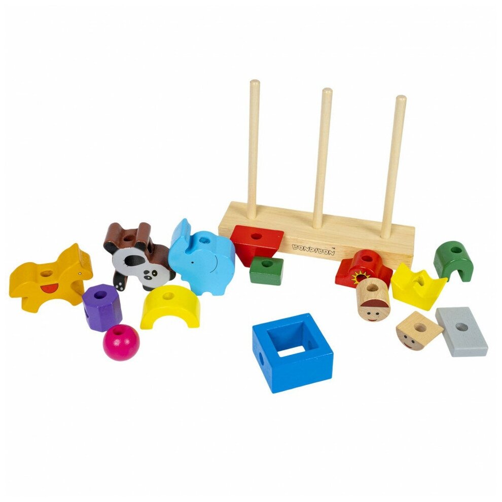 Правила игры простые, а уровни сложности - разные. Выберите задание в зависимости от возраста игрока. Повторите комбинацию из фигур из задания. Для этого насаживайте деревянные детали на колышки и обязательно учитывайте, что все стороны деталей разные. Если на 1 уровне справится малыш 3 лет. То на уровнях выше придется крепко подумать и ребятам постарше.
