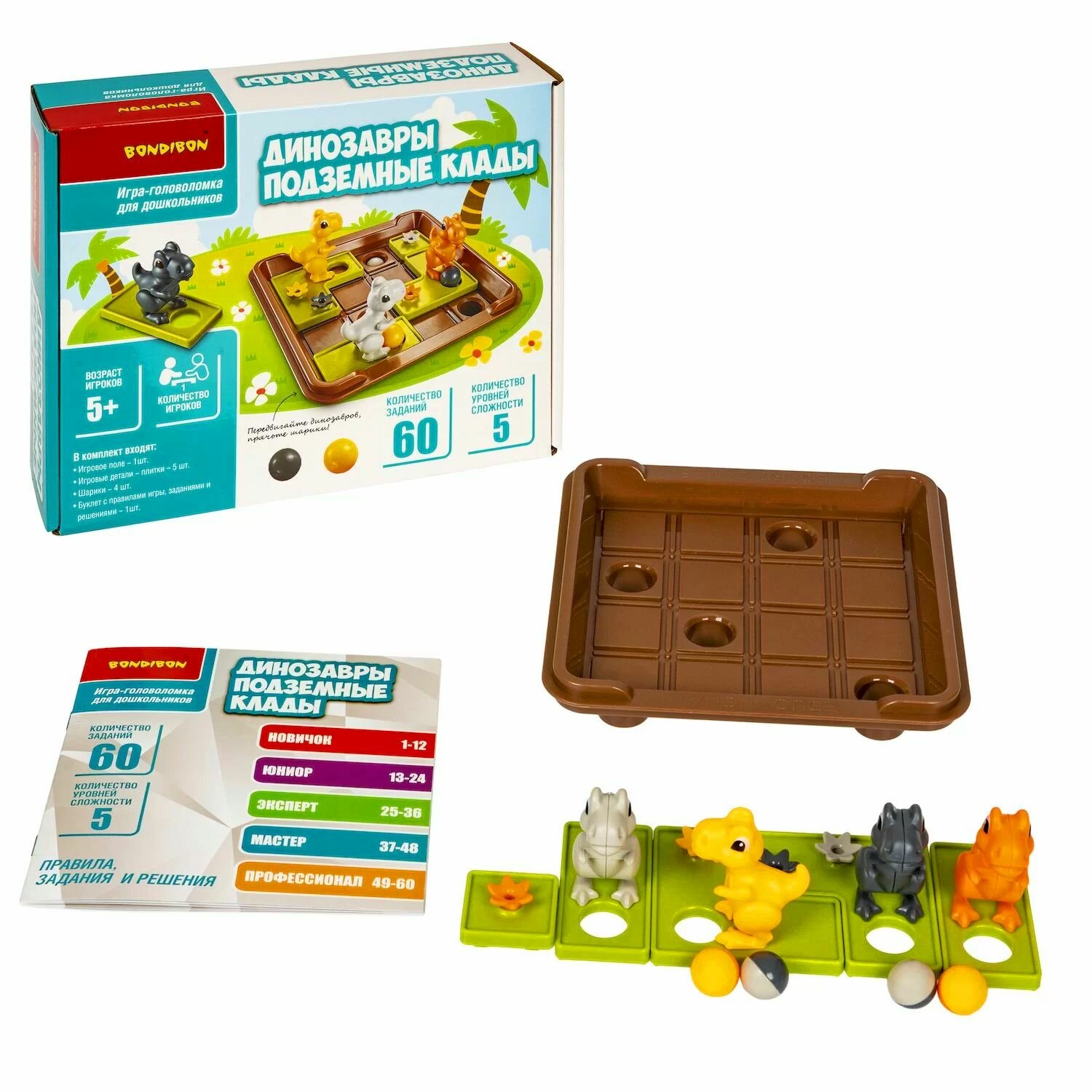 - Настольная логическая игра-головоломка "ДИНОЗАВРЫ. ПОДЗЕМНЫЕ КЛАДЫ" БондиЛогика #bondibon