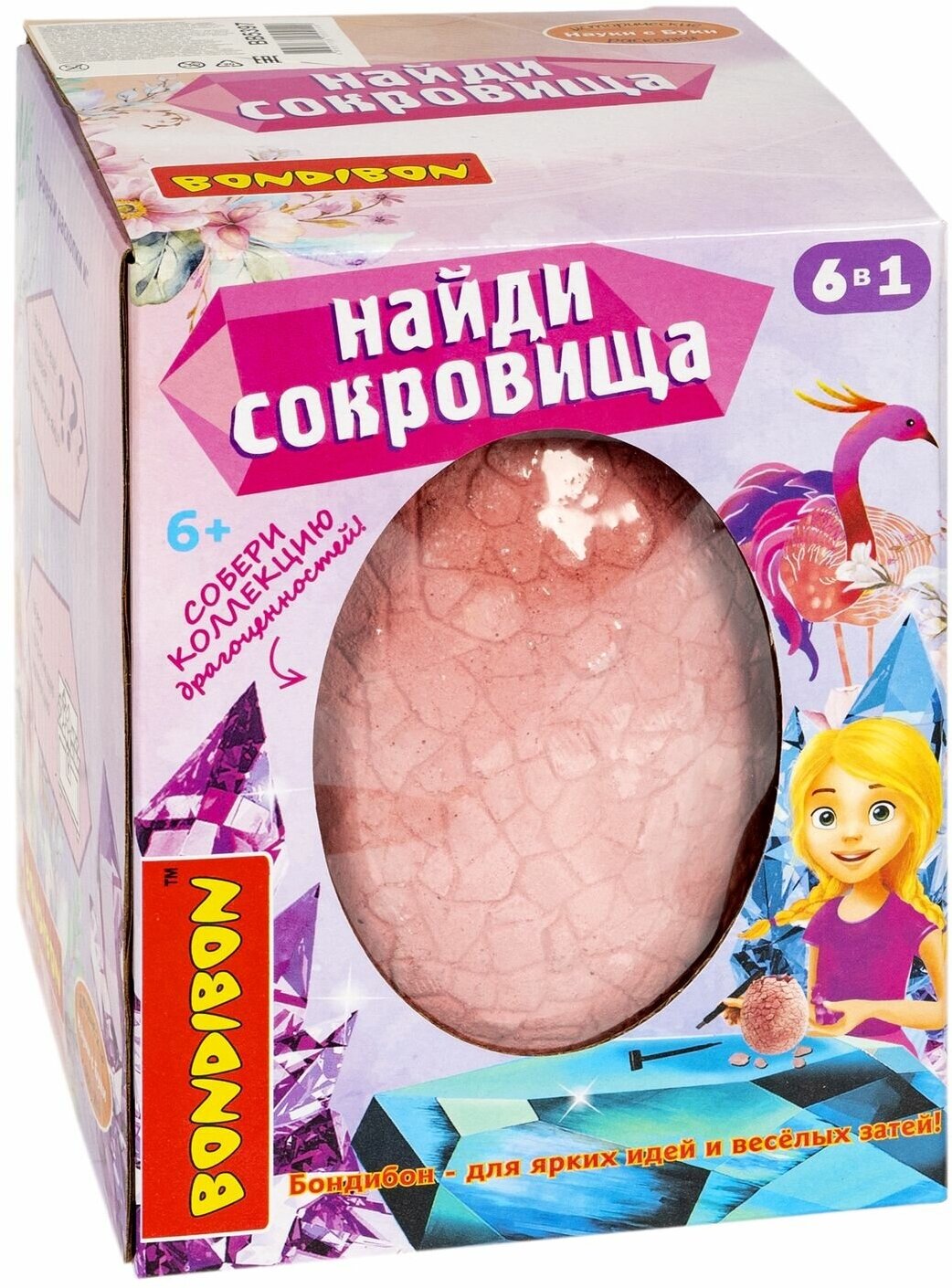 В комплекте: блок для раскопок, сокровища, инструменты и вложение-сюрприз.