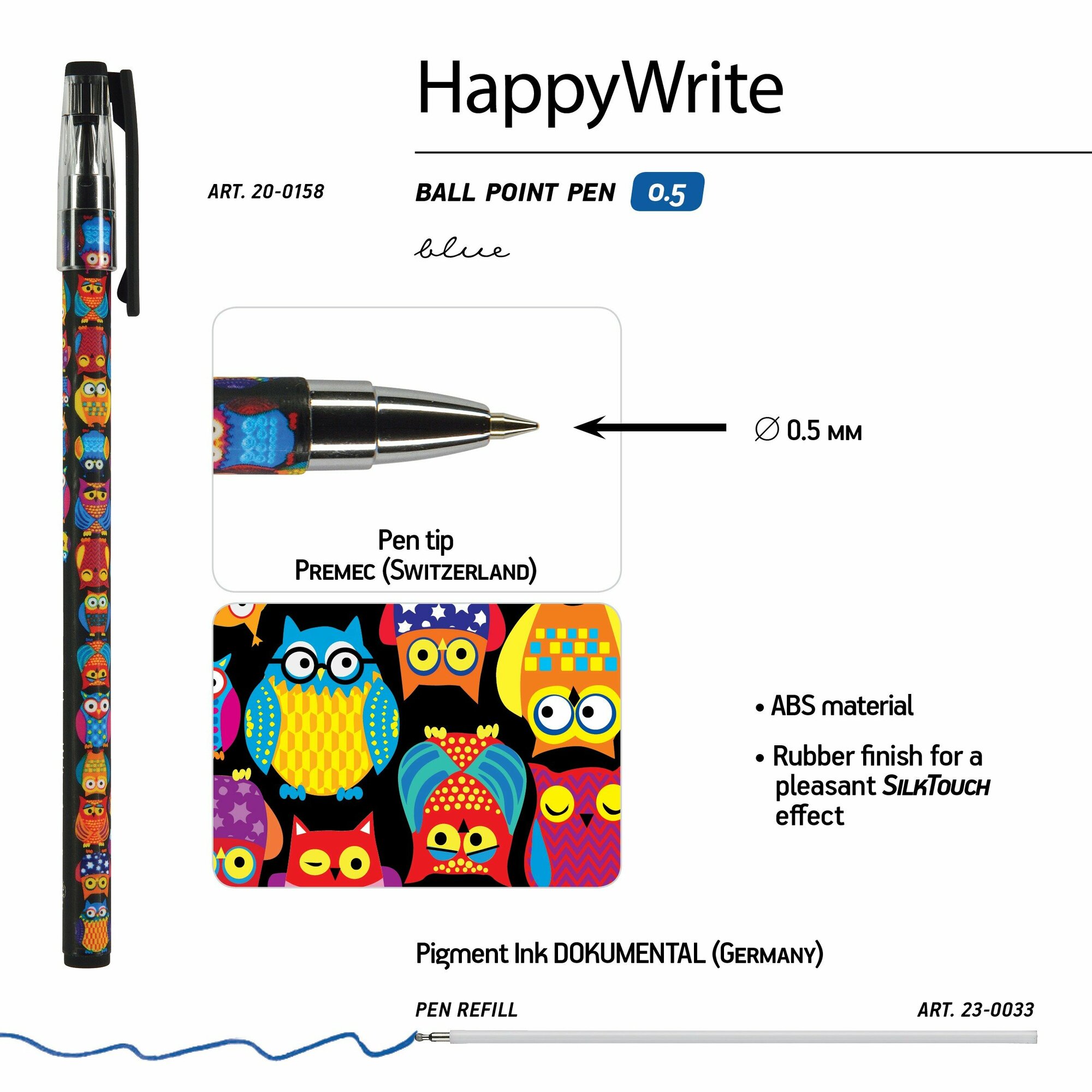 Набор шариковых ручек "HappyWrite. Слоники. Совы" (05 мм 2 штуки синяя) (20-0215/1158) Bruno Visconti