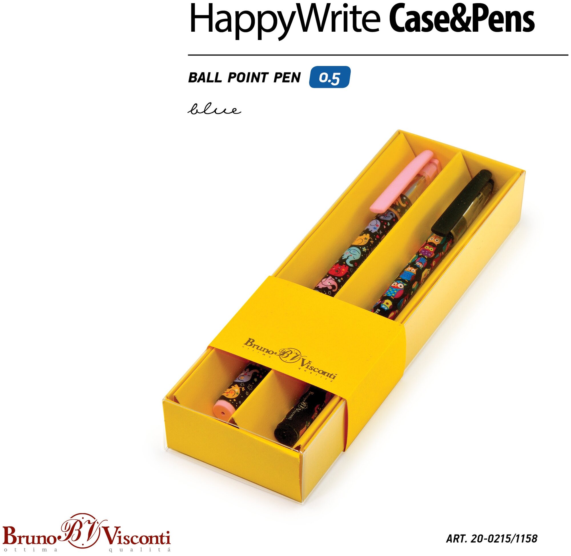 На сегодняшний день товар «Набор шариковых ручек "HappyWrite. Слоники. Совы" (05 мм 2 штуки синяя) (20-0215/1158) Bruno Visconti» можно купить с кешбеком в 1 магазине: Яндекс.Маркет